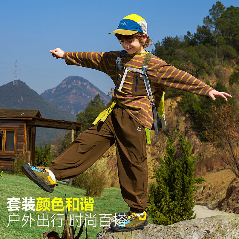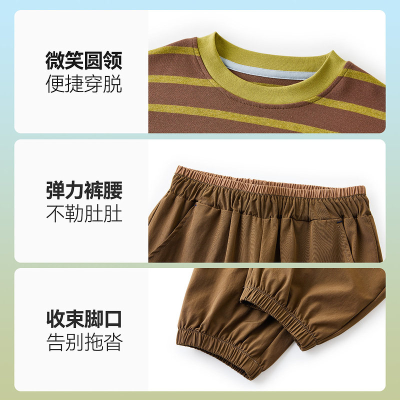 ask儿童套装2026春季新款男女童圆领条纹T恤中大童束脚裤子两件装