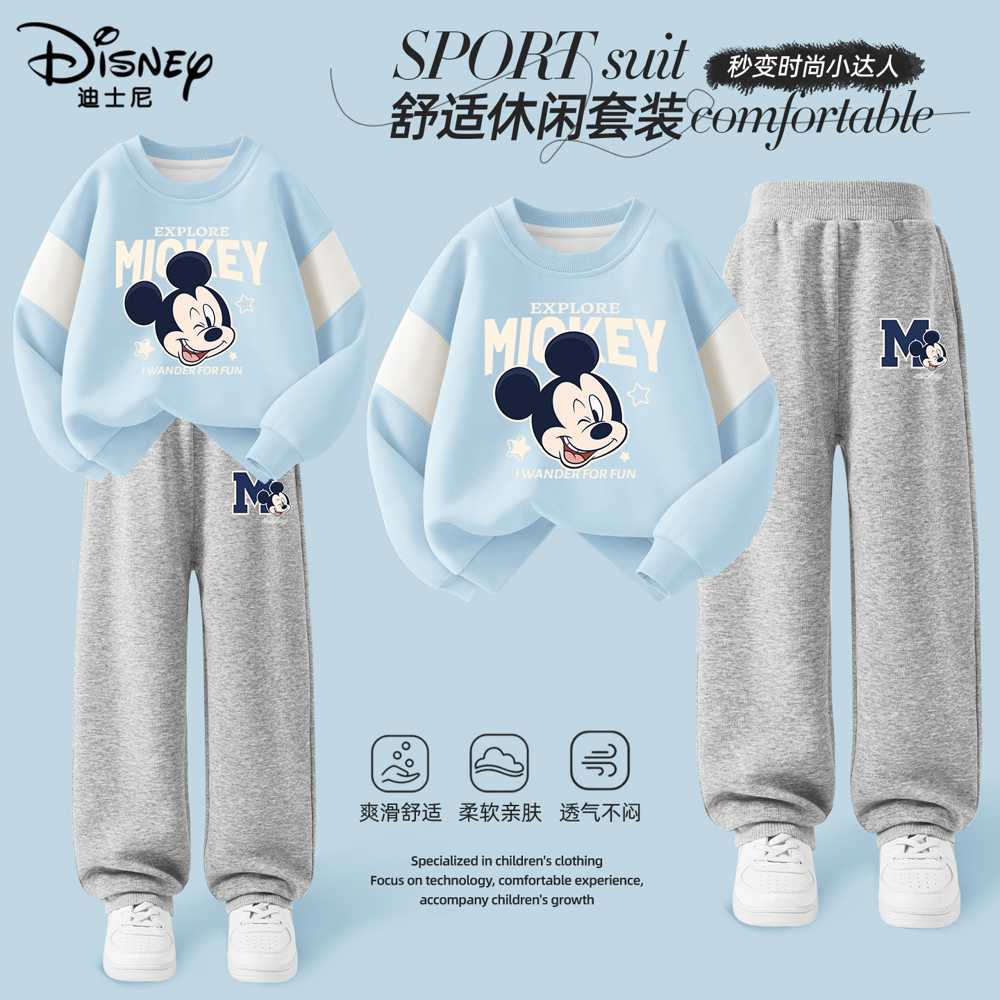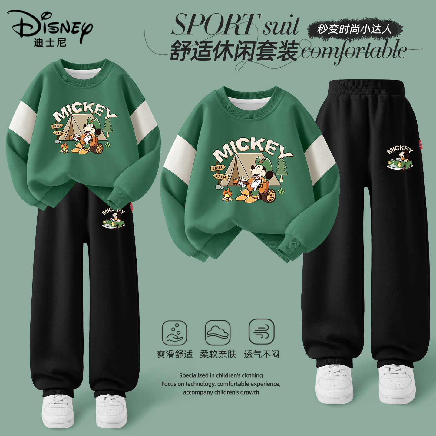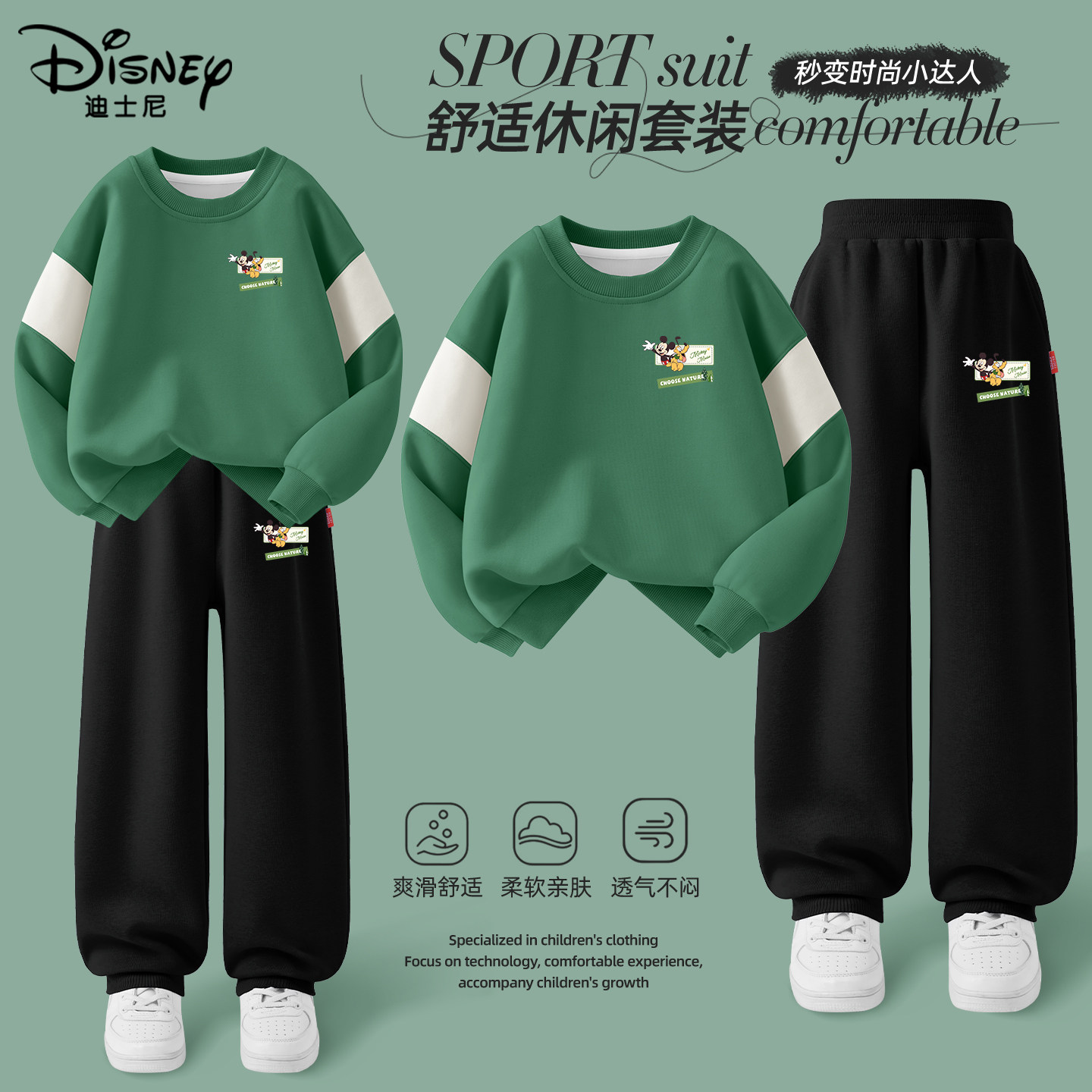迪士尼童装男童套装春秋款2026新款早春运动两件套儿童春装卫衣潮