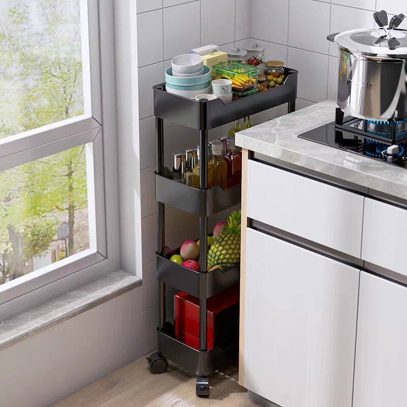 厨房夹缝置物架落地多层超窄冰箱家用带轮收纳架卫生间杂物小推车