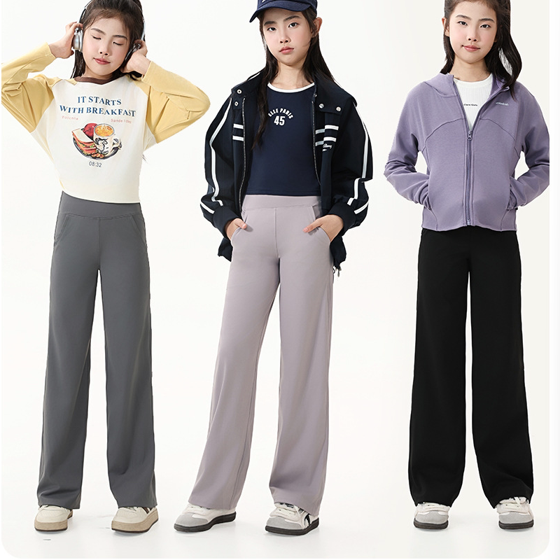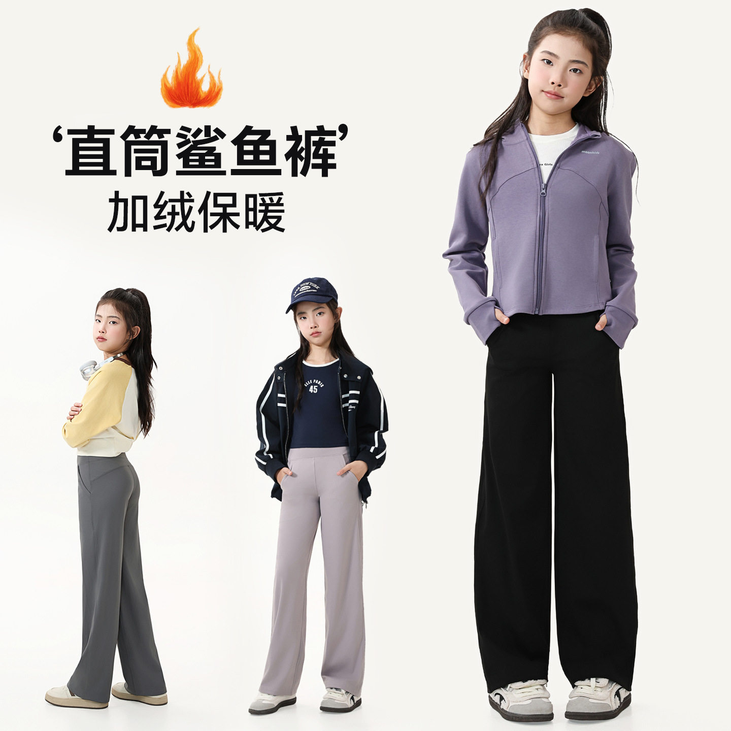 女童鲨鱼裤春季外穿儿童阔腿休闲裤秋冬中大童一体薄绒加厚长裤子