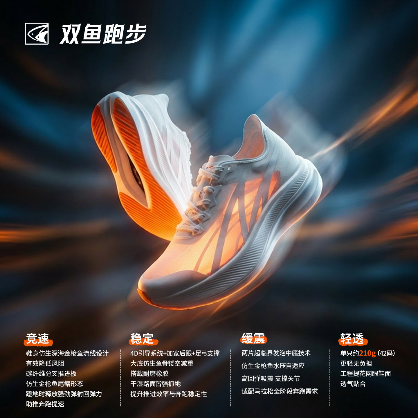 双鱼跑步碳板竞速跑鞋鲔鱼1代进三小白鞋专业跑步鞋碳纤维板透气