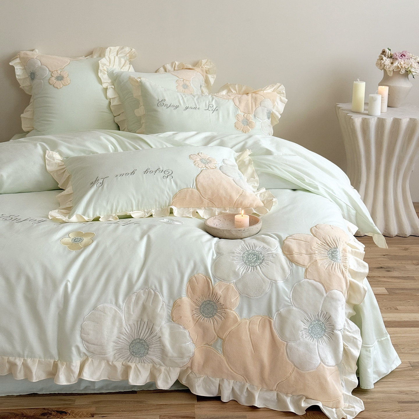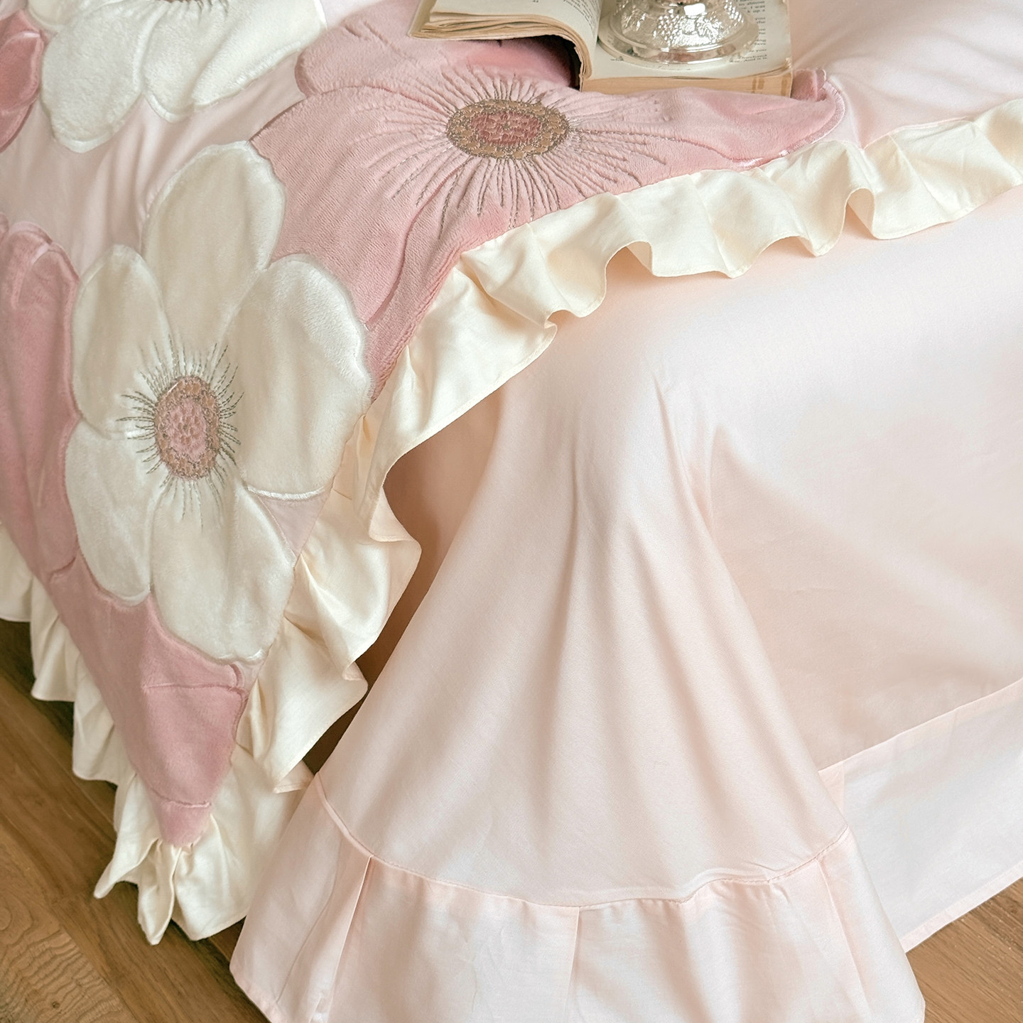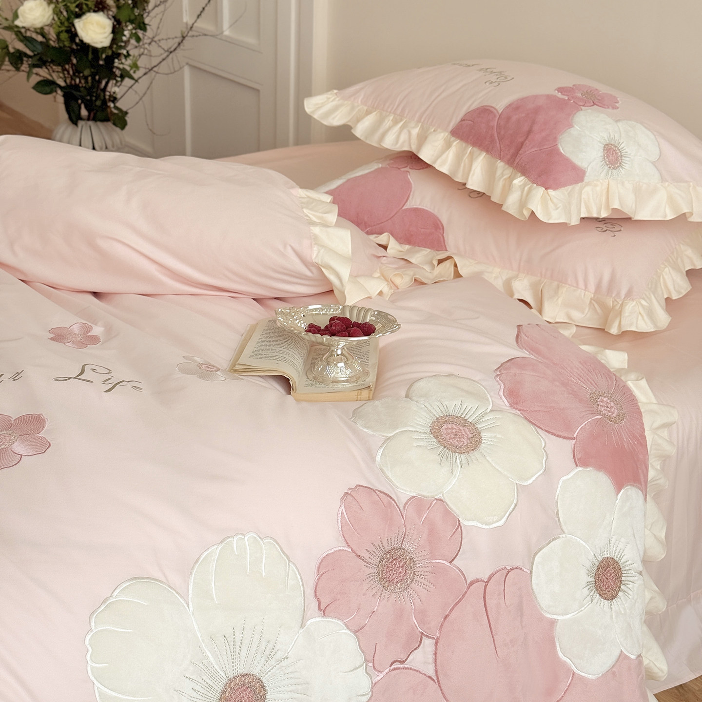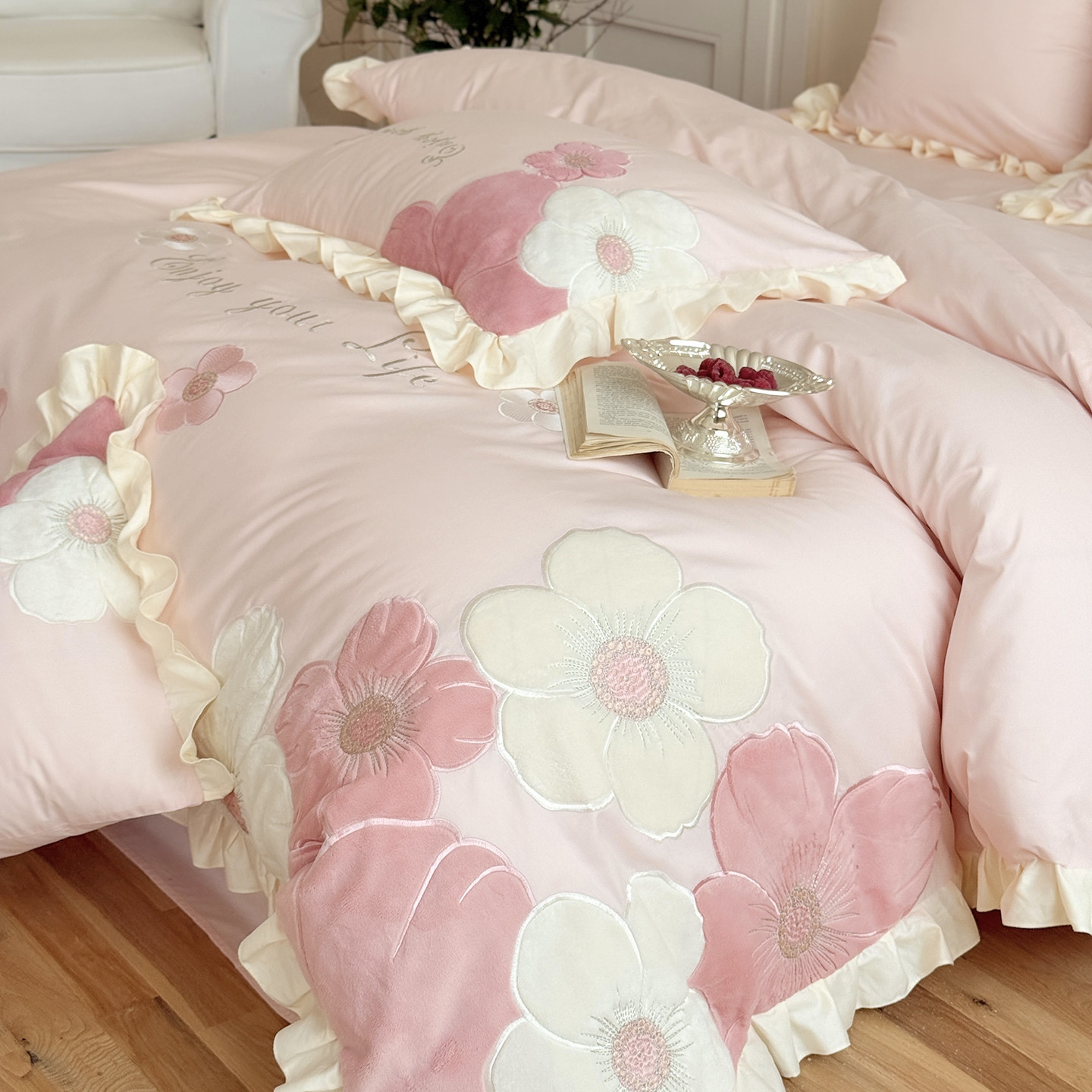 少女心全棉四件套100纯棉贴布绣被套床单新疆棉柔软裸睡床上用品4
