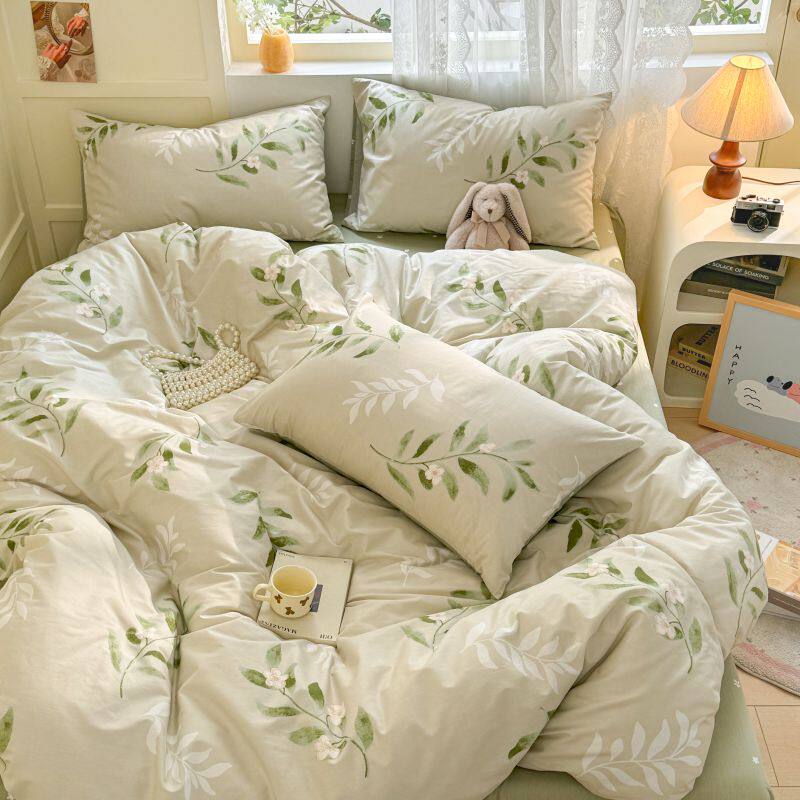 清新森系纯棉床上四件套全棉田园春夏床品绿色被套床单三件套床笠
