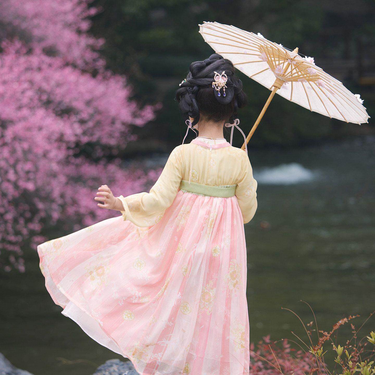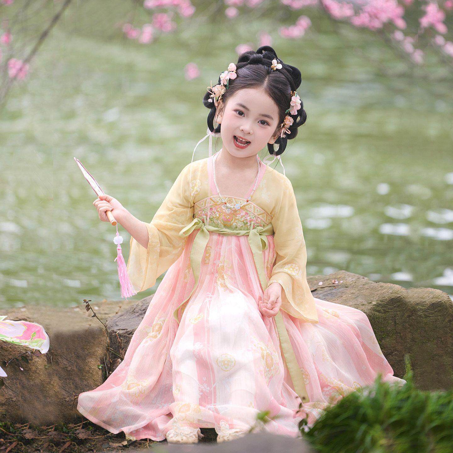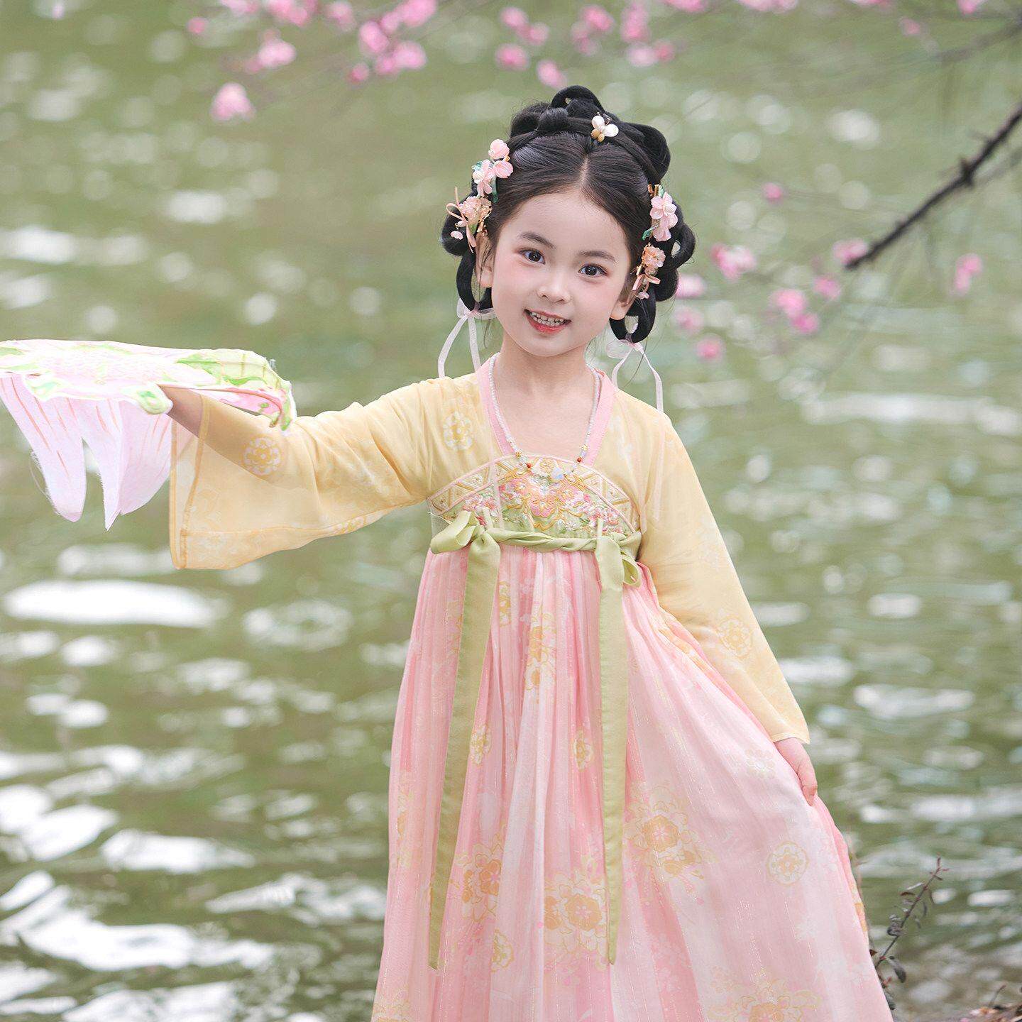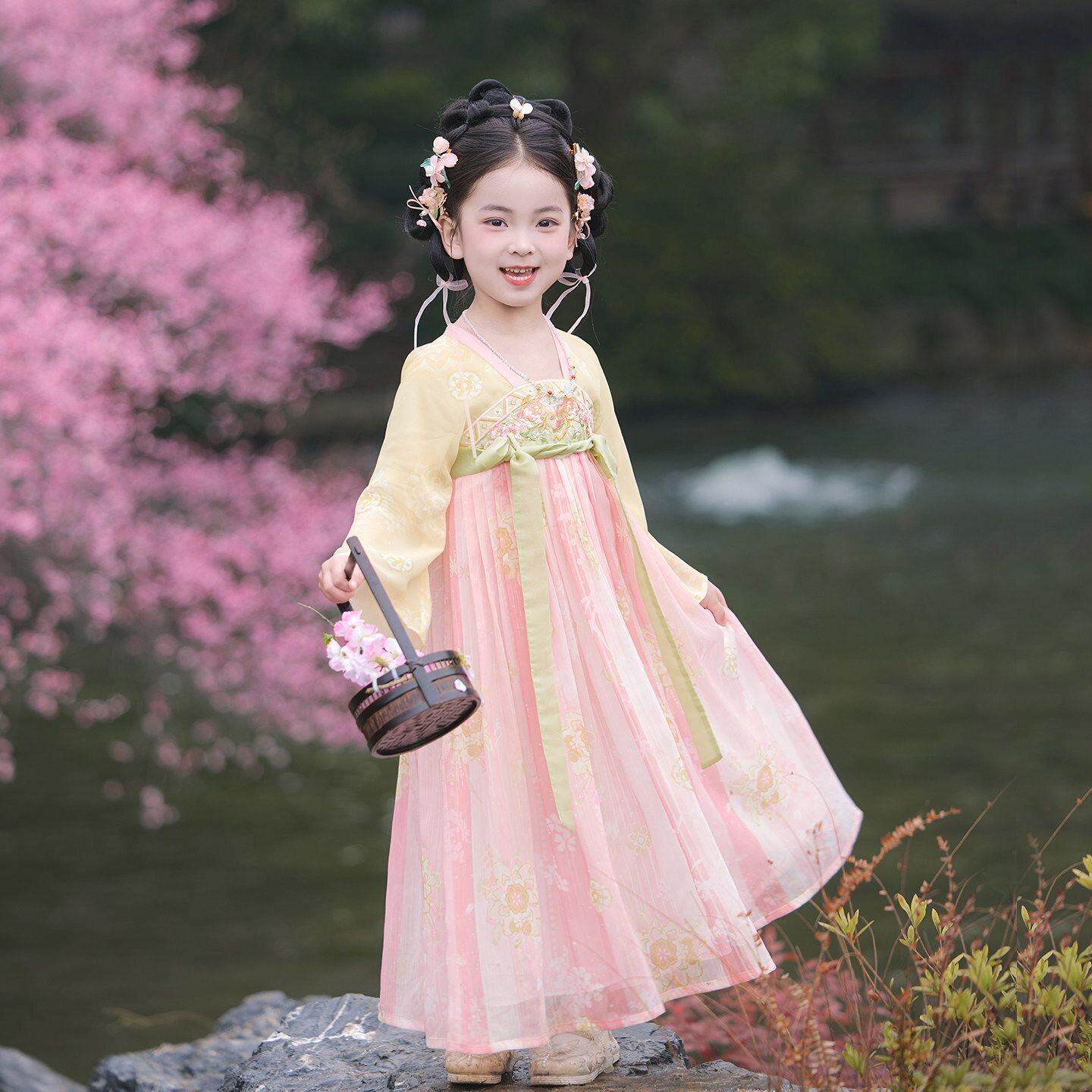 女童汉服春夏薄款长袖超仙连衣裙唐装公主裙古风儒裙女宝演出服