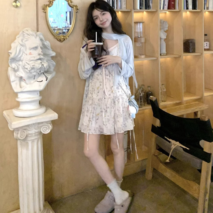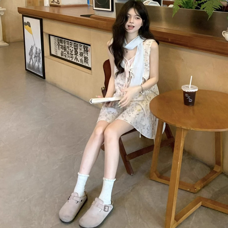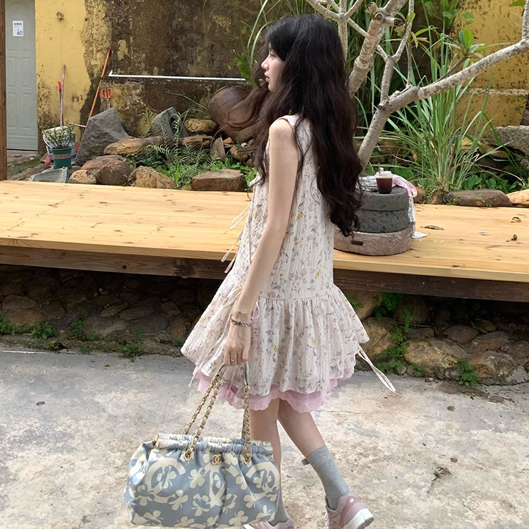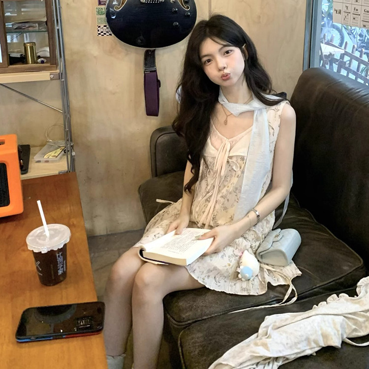 夏季小个子减龄高级感温柔风气质碎花连衣裙背心短裙子两件套装女
