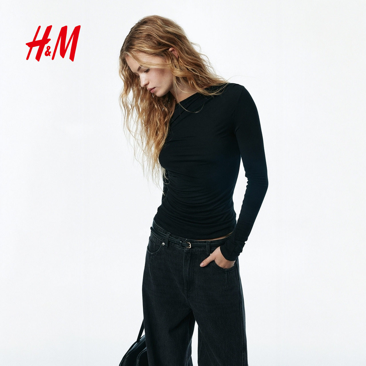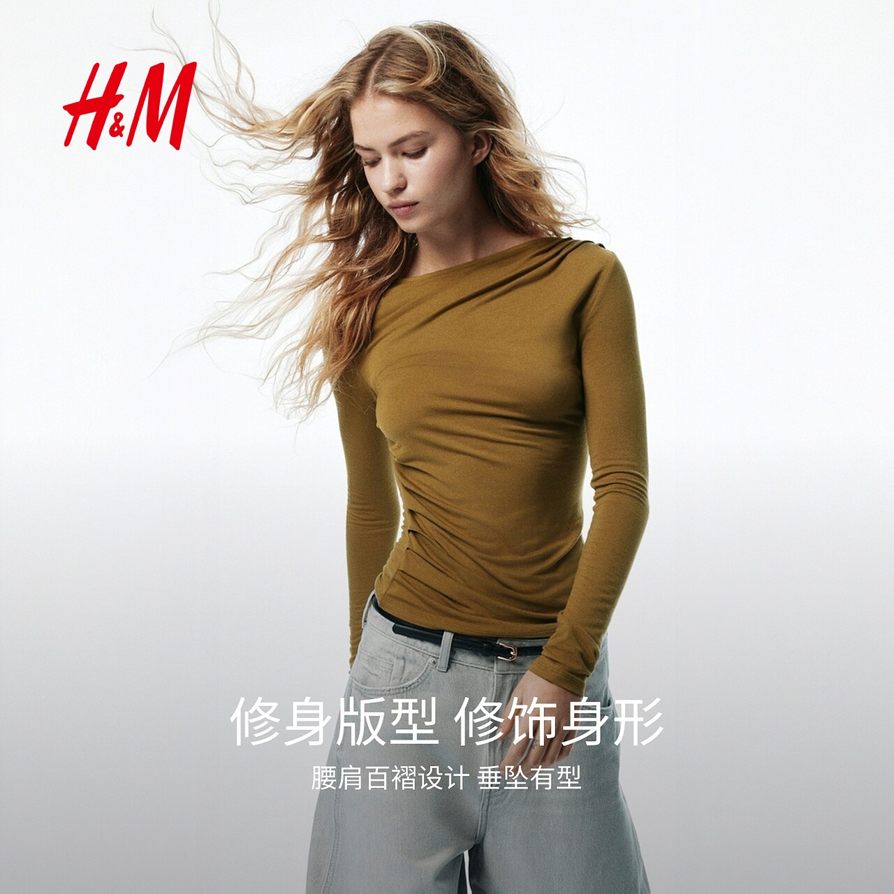 HM2026春季新款女装垂褶粘纤上衣1314271