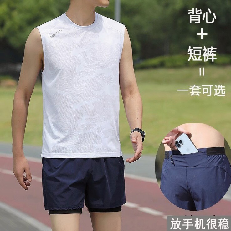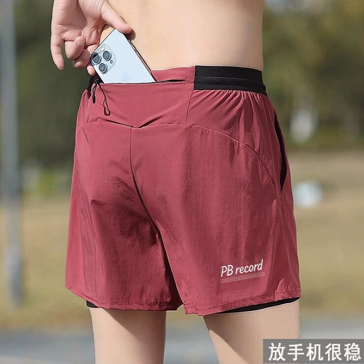 德国跑步短裤男款运动套装可放手机马拉松冰丝带内衬速干三分夏季