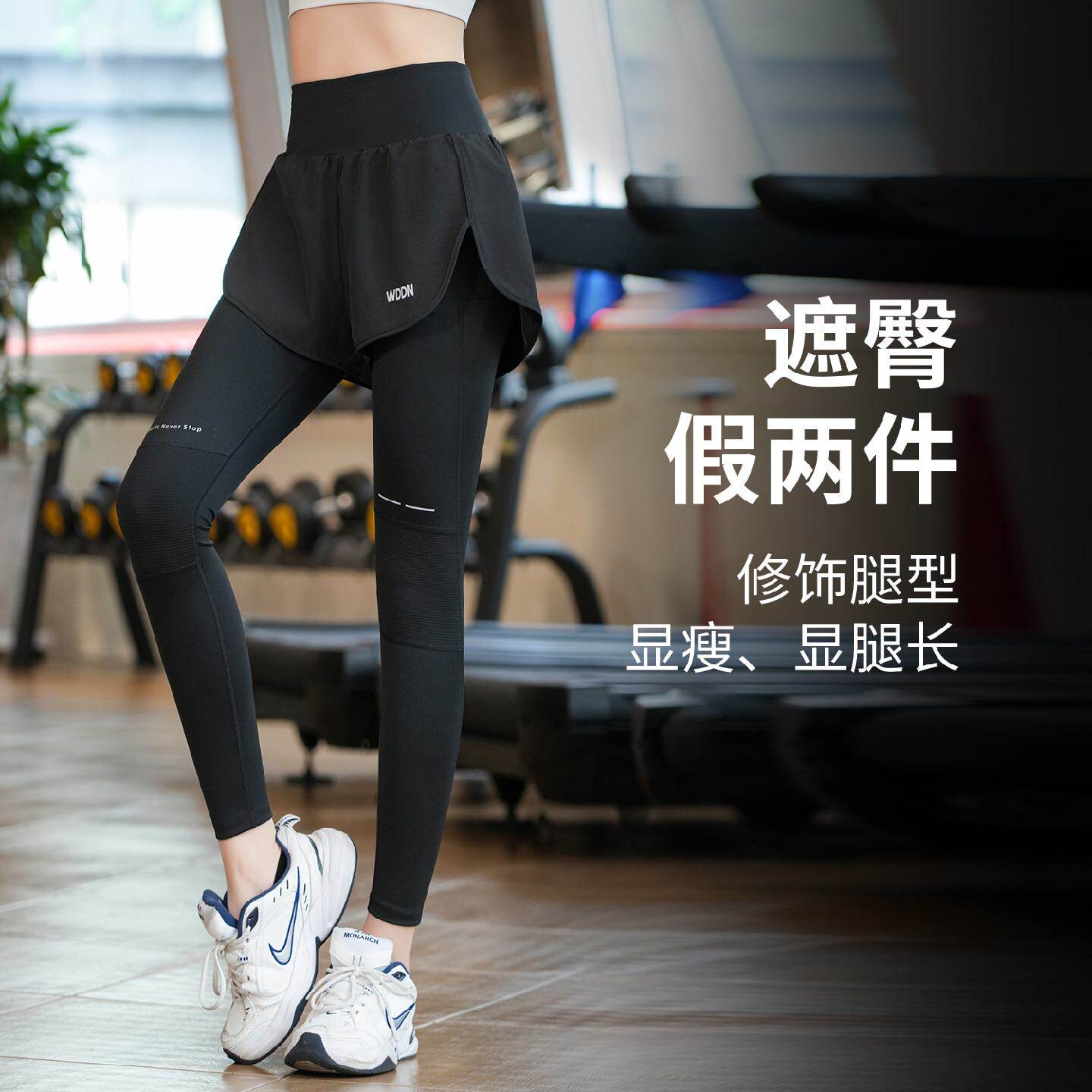 假两件瑜伽裤女速干健身护膝运动裤压缩长裤春秋后口袋保暖跑步裤
