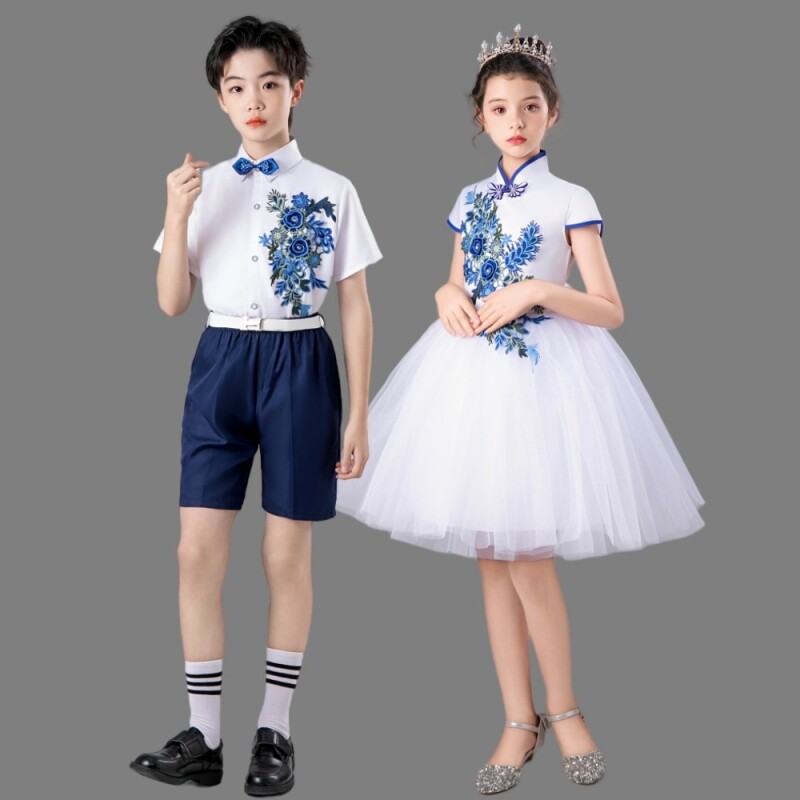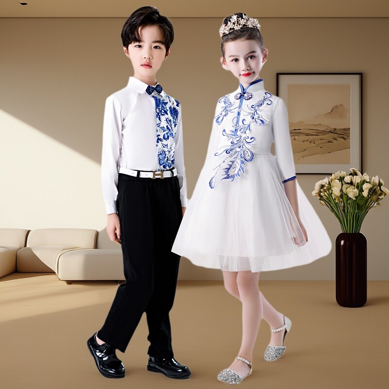 儿童合唱演出服青花瓷男女童演讲比赛合唱团中小学生朗诵表演服装