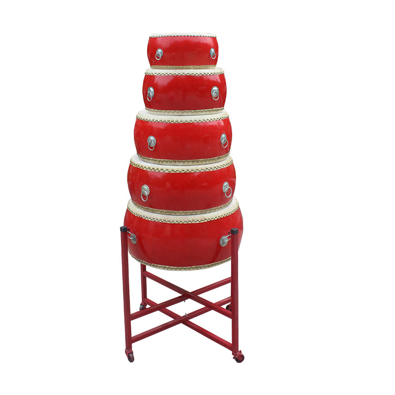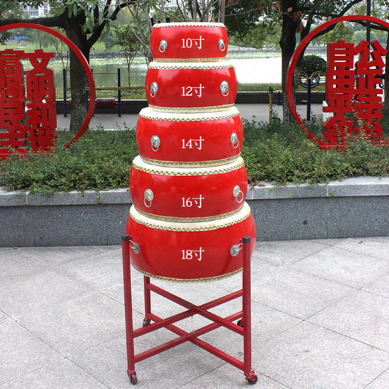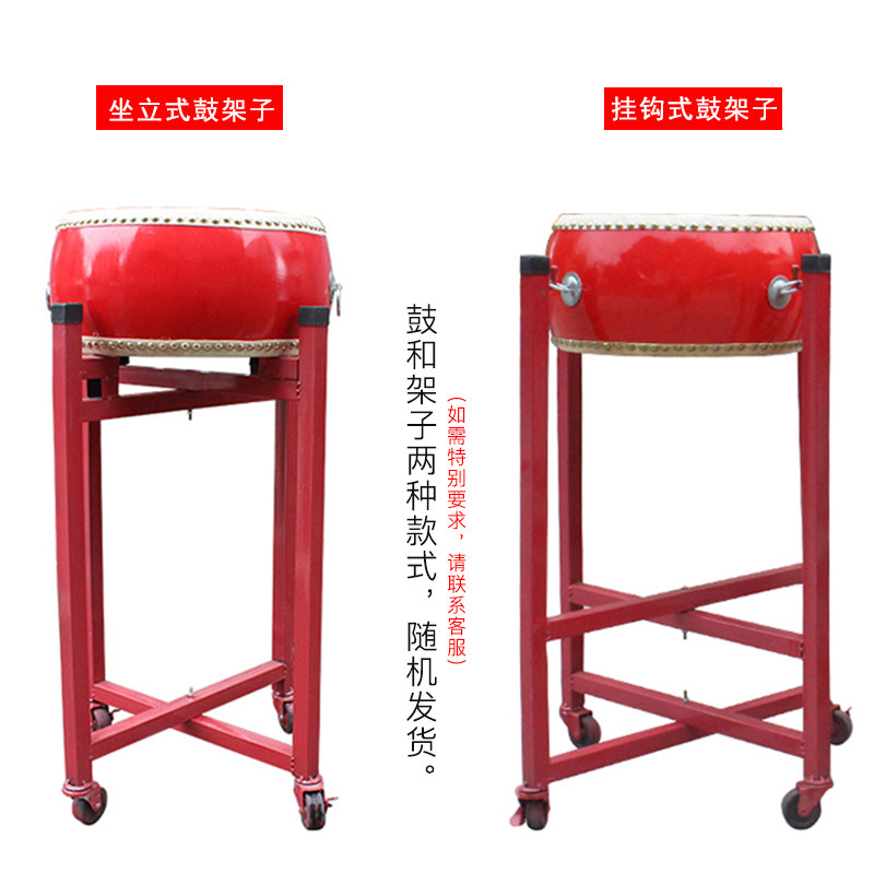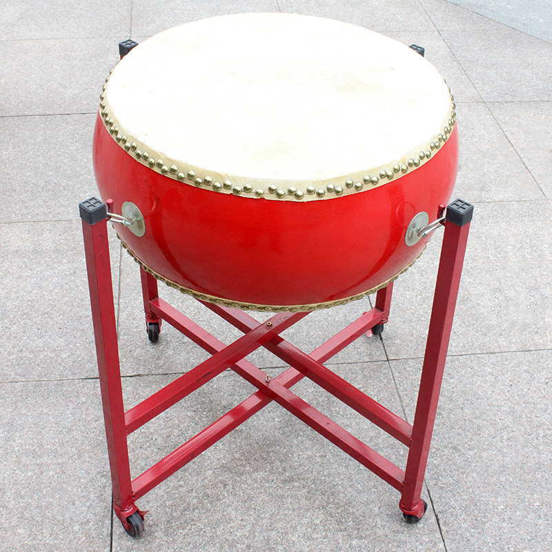 大鼓牛皮中国红牛皮鼓成人实木红鼓扁鼓大鼓架子锣鼓乐器10至18寸