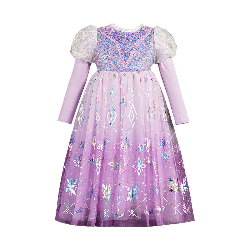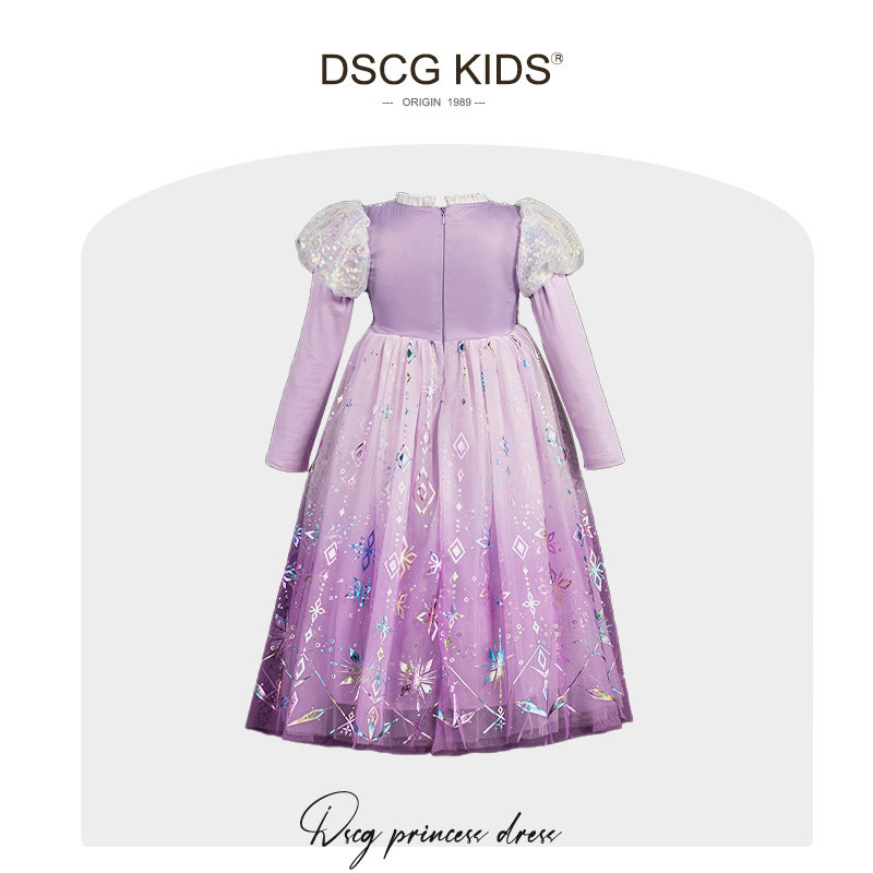 女童长发公主裙2026春秋新款紫色渐变高级感儿童生日礼服网纱裙子