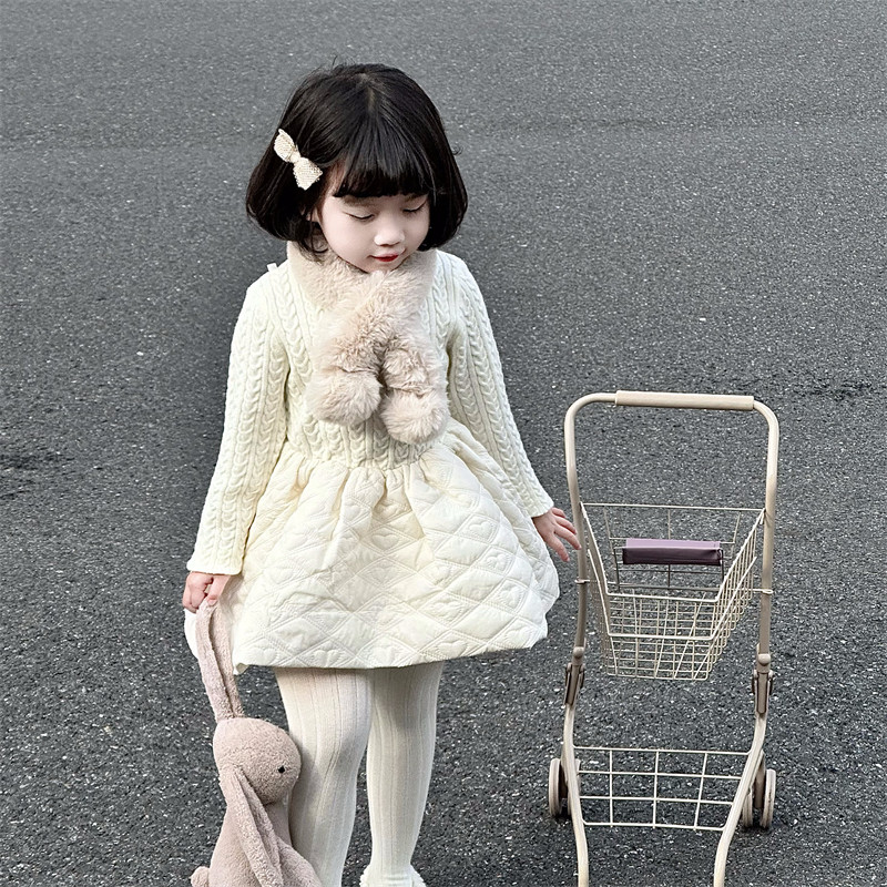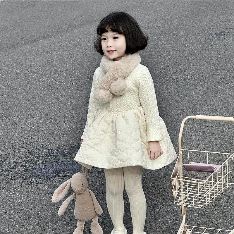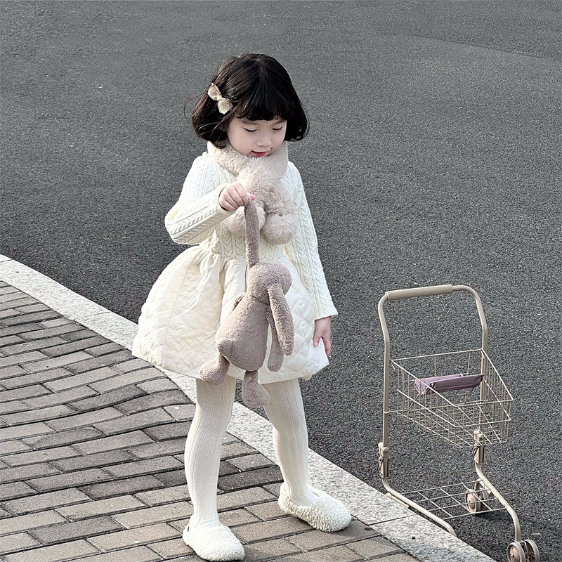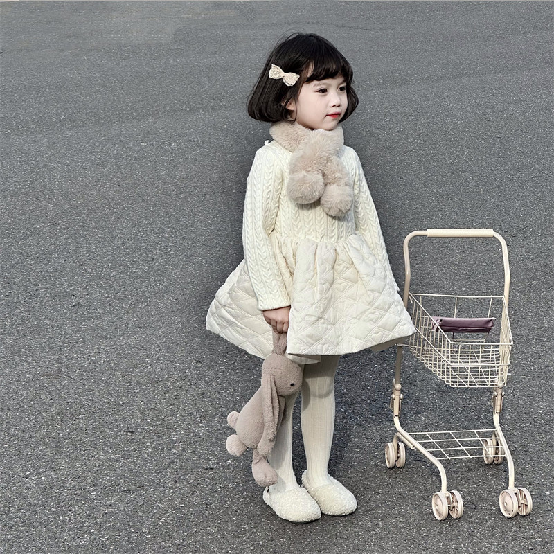 WONIU好温柔~女童秋冬连衣裙拼接女童针织白色裙子内搭公主裙打底
