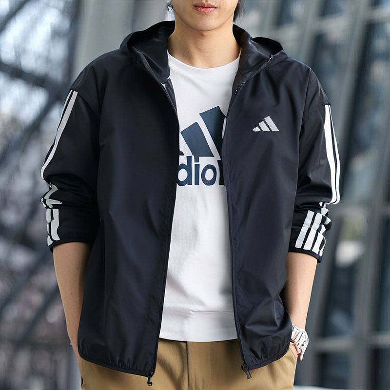 阿迪达斯外套男装春季新款梭织防风衣连帽透气薄款宽松夹克IM7848