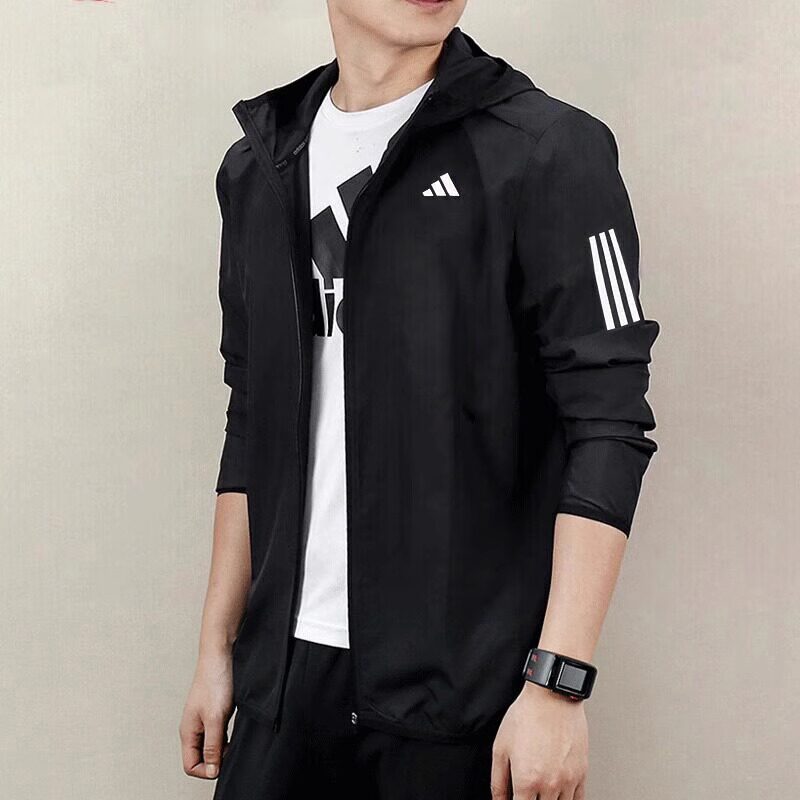 阿迪达斯防风衣男外套春季新款连帽运动服跑步开衫薄款夹克IN1483
