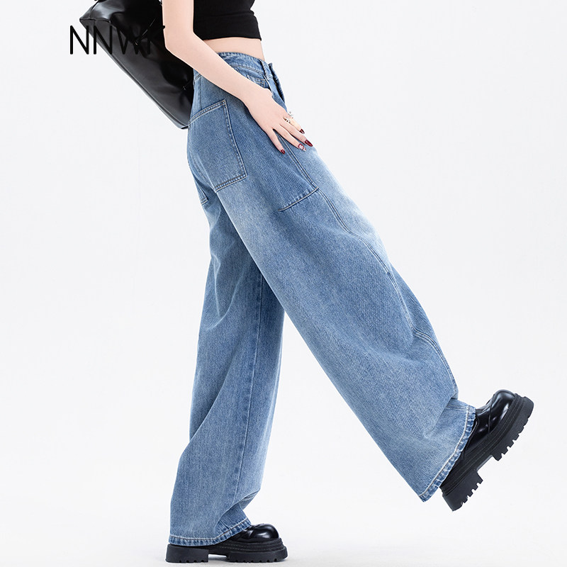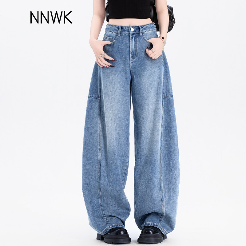 女士浅色牛仔裤女2026新款春秋高腰裤子女款爆款宽松镰刀裤弯刀裤