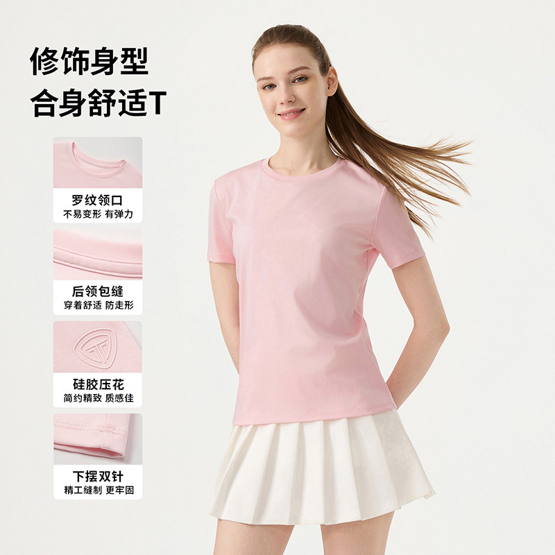 坦博尔户外春夏季新款短袖棉T恤女圆领运动百搭宽松透气上衣徒步