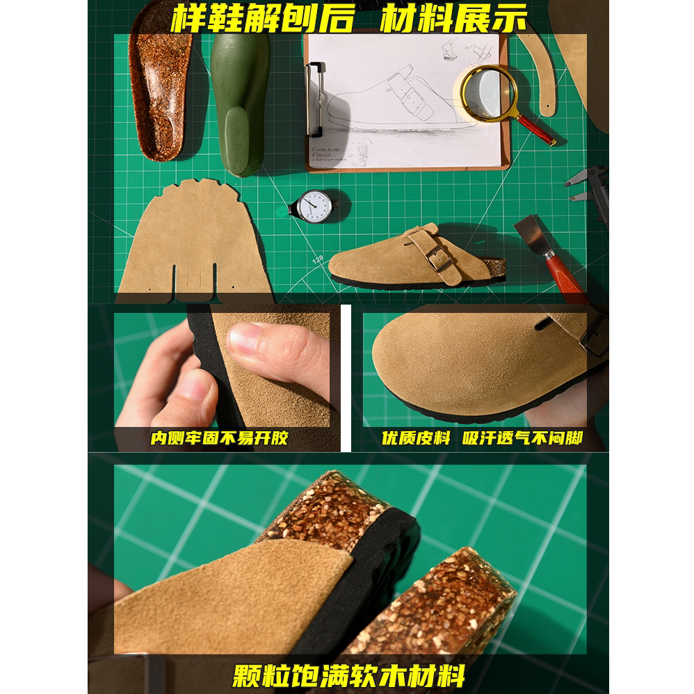 真皮复古勃肯鞋男女春季2026新款软木包头半拖鞋休闲百搭博肯鞋子