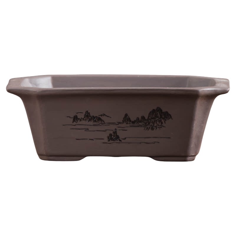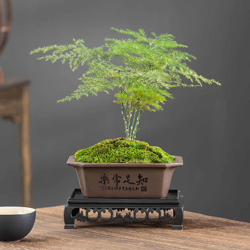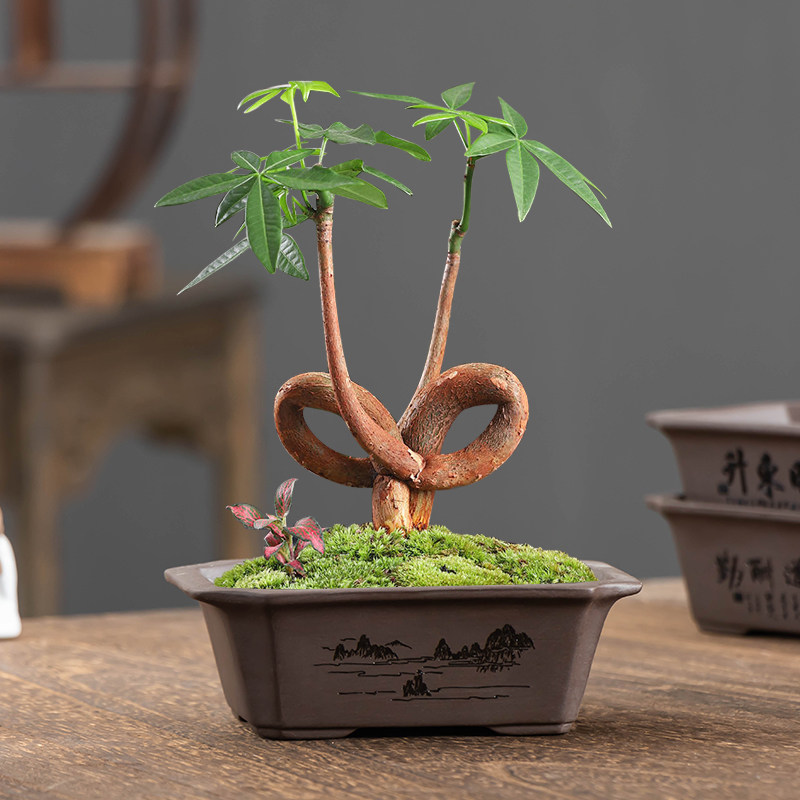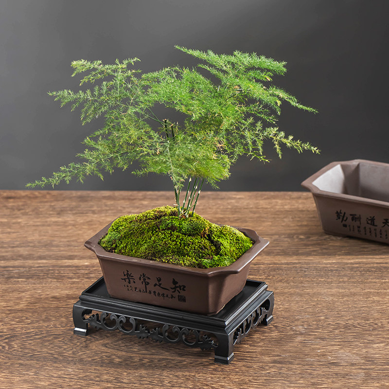 紫砂长方形盆栽陶瓷花盆禅意桌面盆景小摆件透气带托盘绿植专用盆