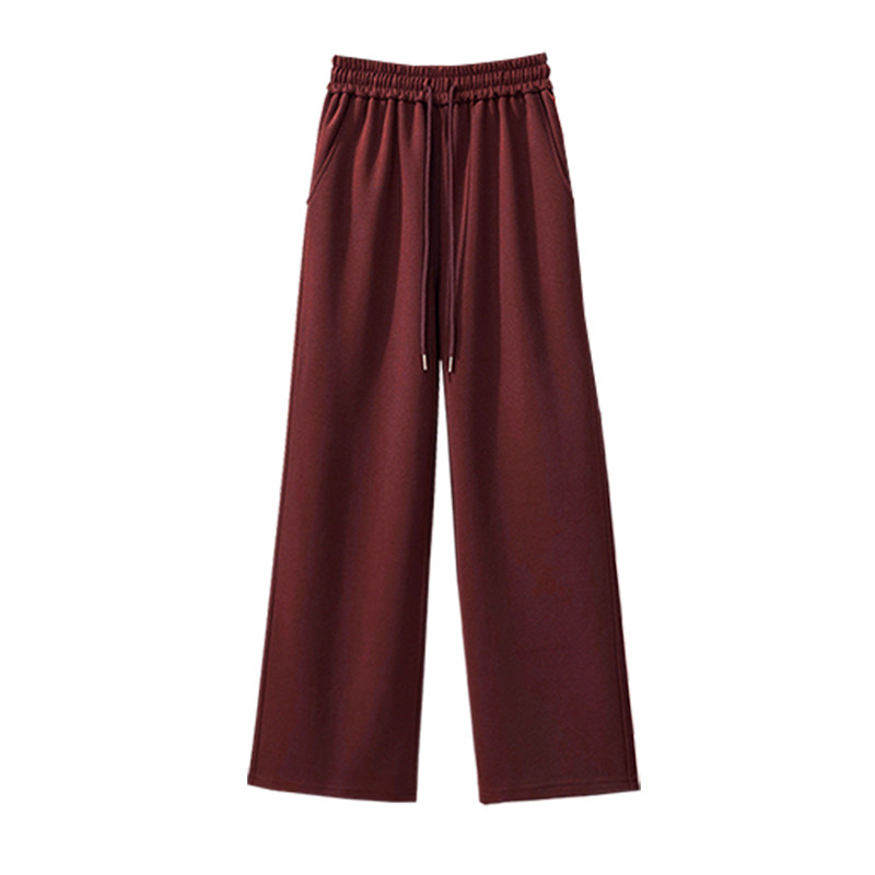安哥拉红色裤子女2026新款垂感女裤阔腿裤运动裤女秋冬季女款卫裤