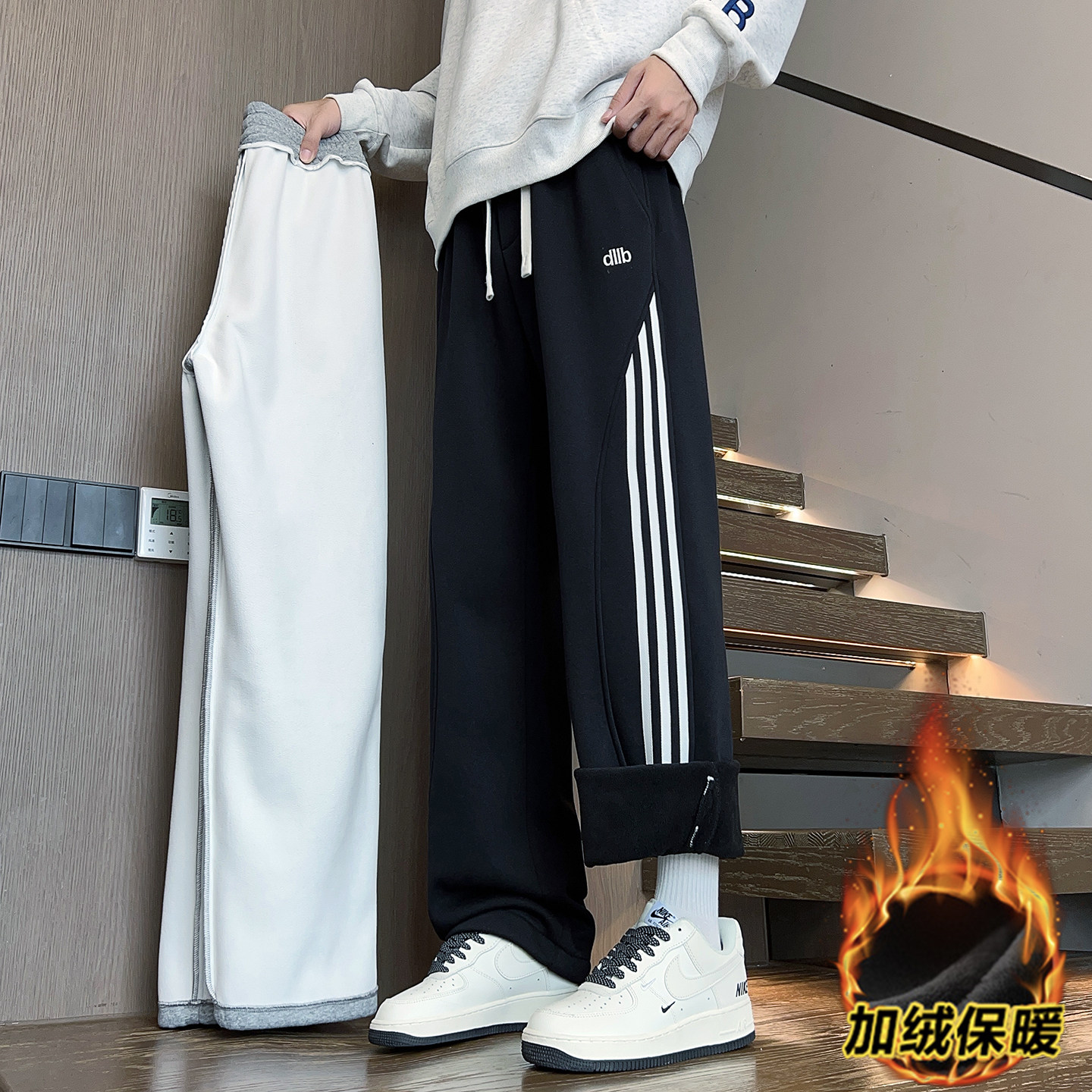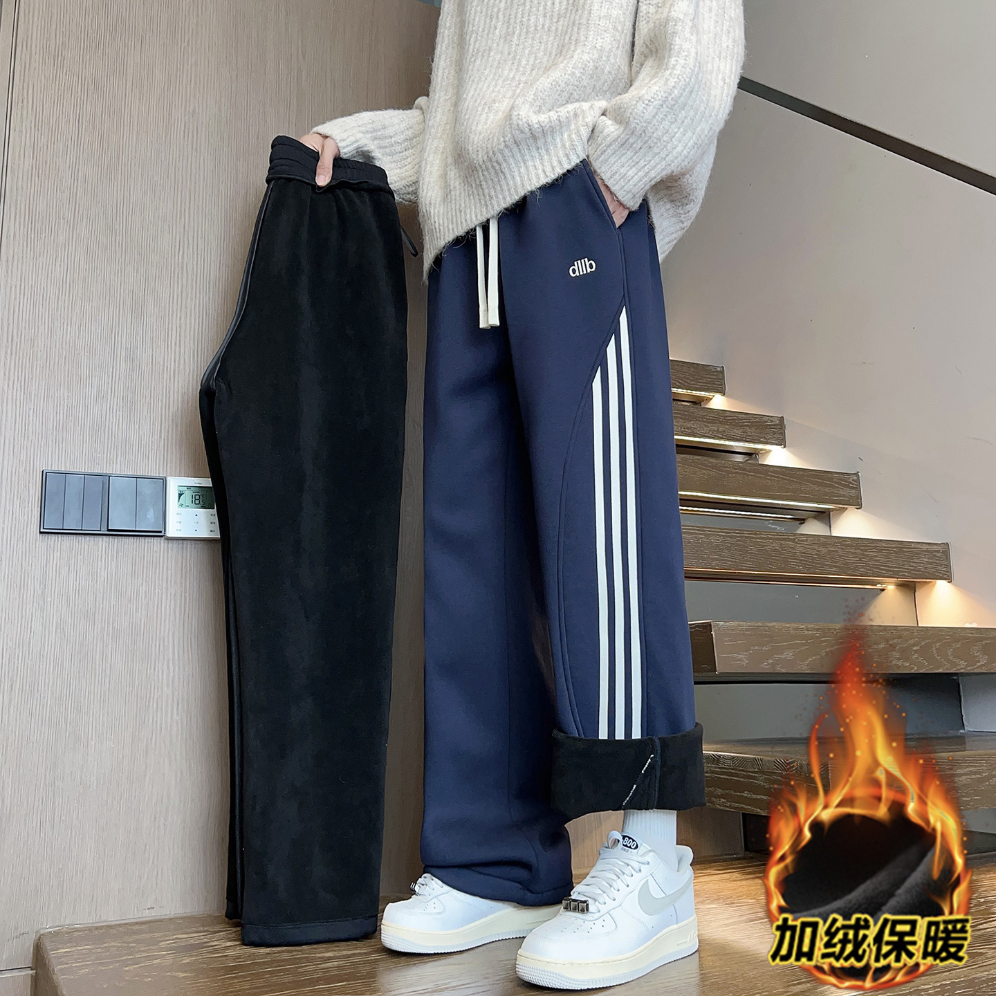 秋冬款休闲长裤子男孩初中高中学生加绒加厚青少年大童直筒卫裤潮