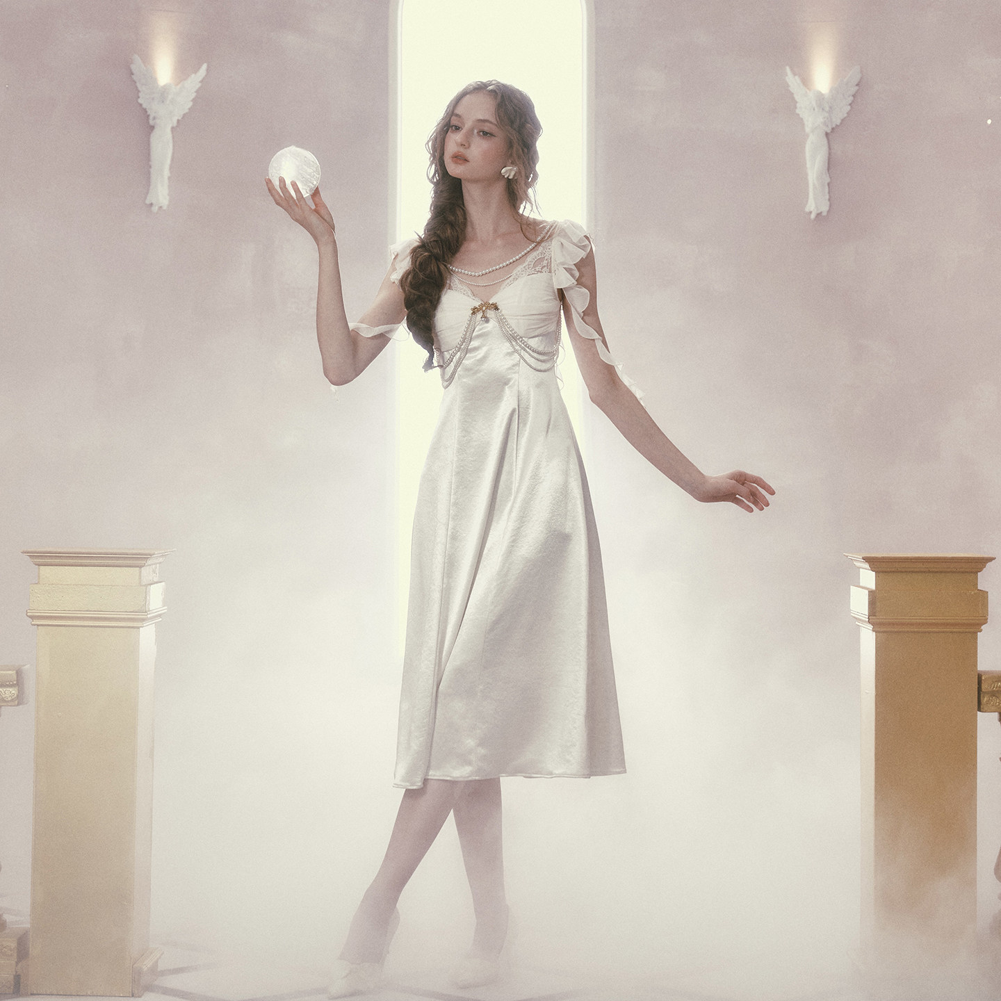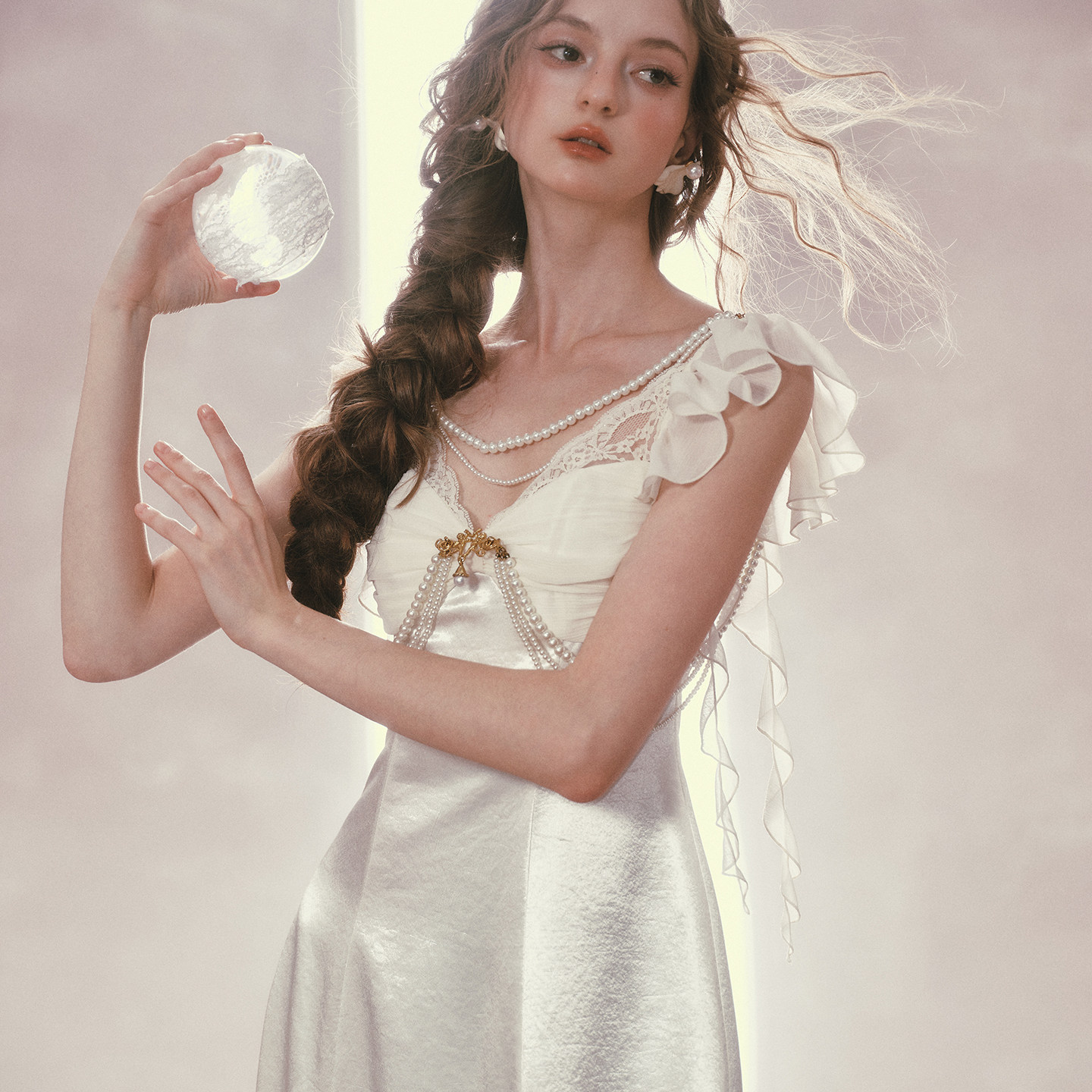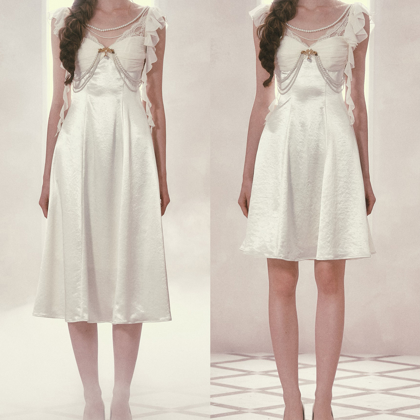 LaceMade 月光加冕礼 法式珠光缎面礼服裙吊带连衣裙小个子长裙夏