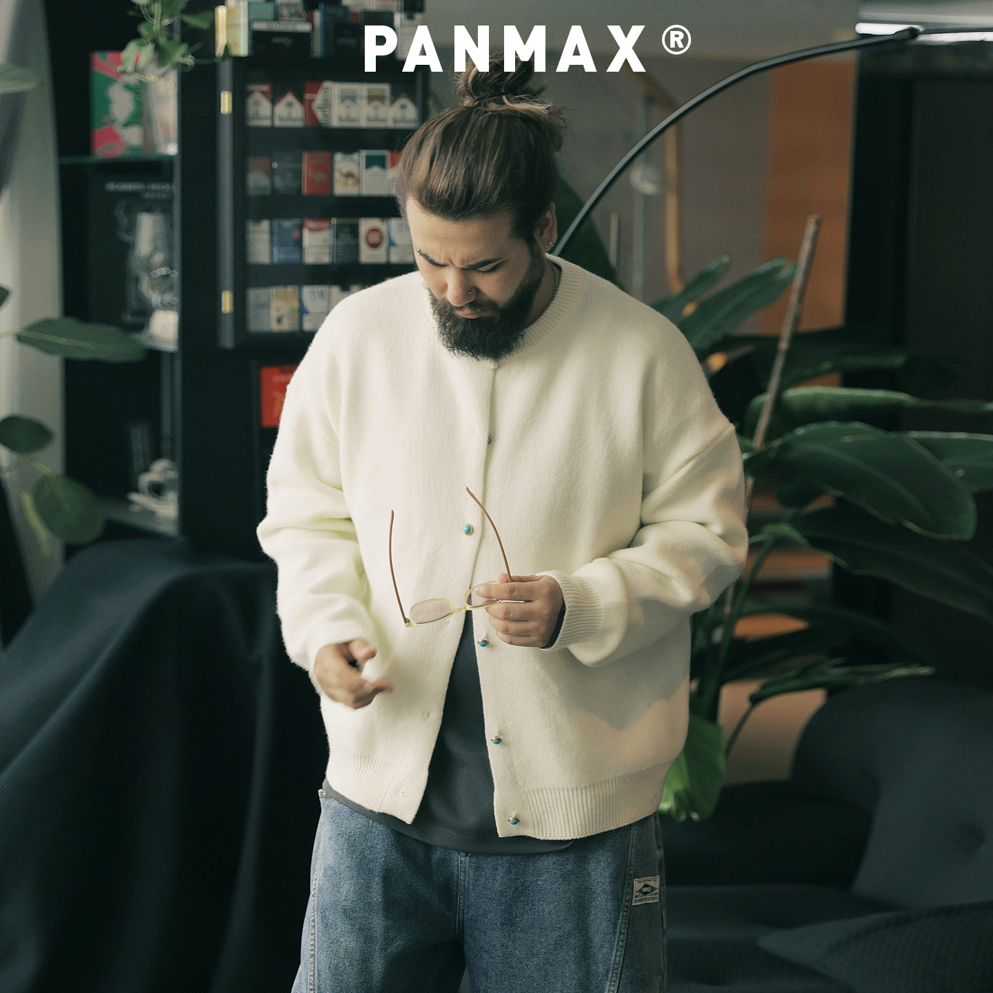 PANMAX大码潮牌男装老钱风针织开衫毛衣美式精致纽扣加大针织外套
