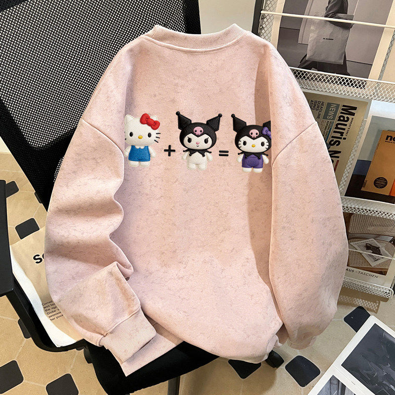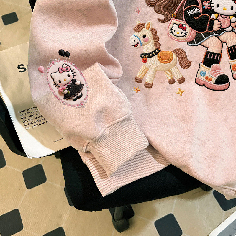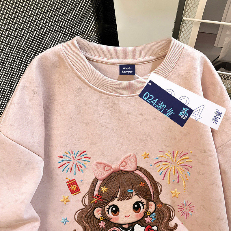 女童扎染圆领卫衣2026马年新款卡通女孩中大童秋冬装加绒休闲上衣