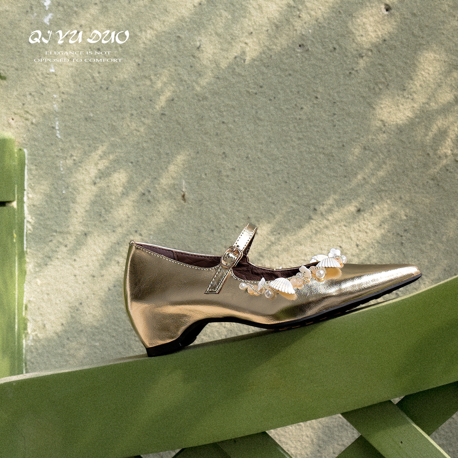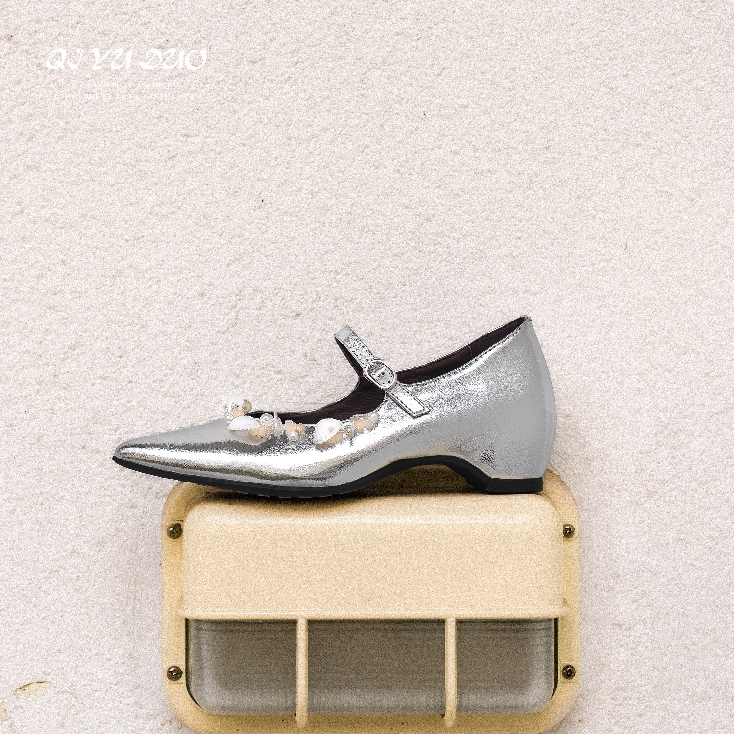QIYUDUO 仙女风玛丽珍鞋女婚鞋2026春款真皮尖头内增高一字带单鞋