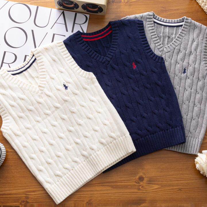 热销秋冬款男女童棉质针织背心经典麻花百搭坎肩学院风毛衣马甲潮