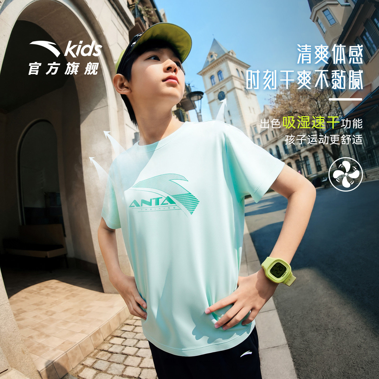 海绵T-安踏儿童短袖T恤亲肤男大童短T2026夏季新款透气舒适白色T