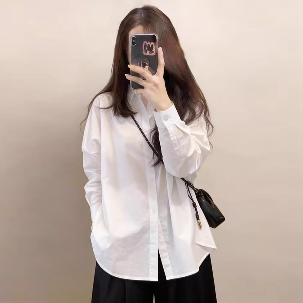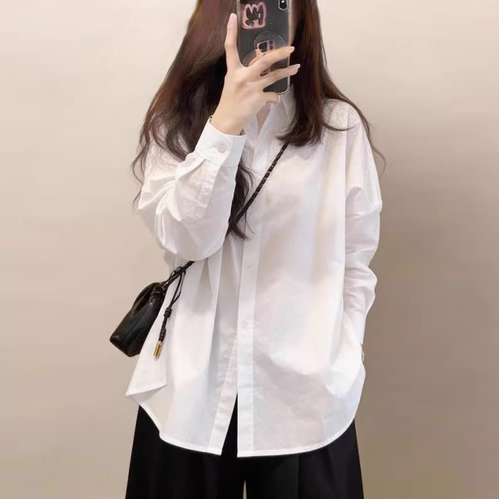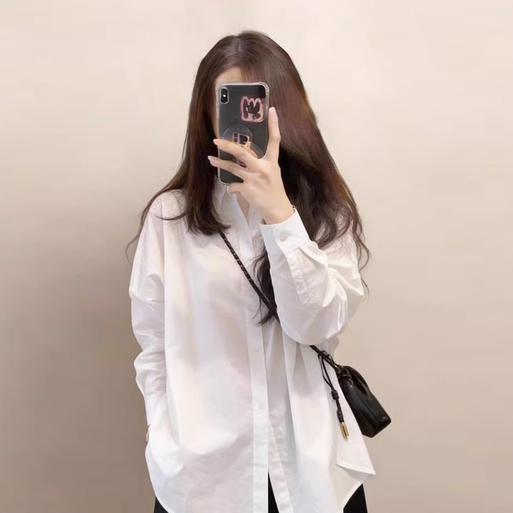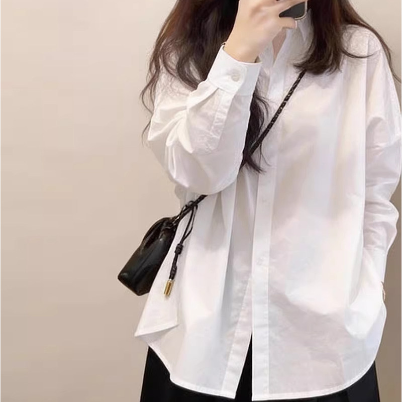 独特漂亮巨好看白色衬衫女款2026年春装新款中长版遮屁股宽松上衣