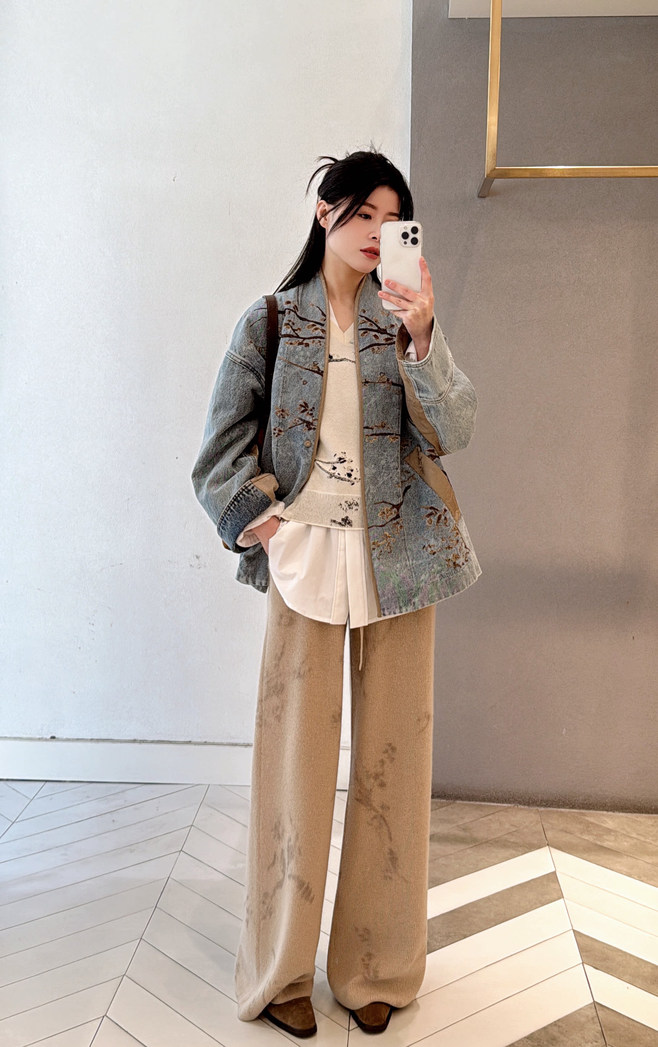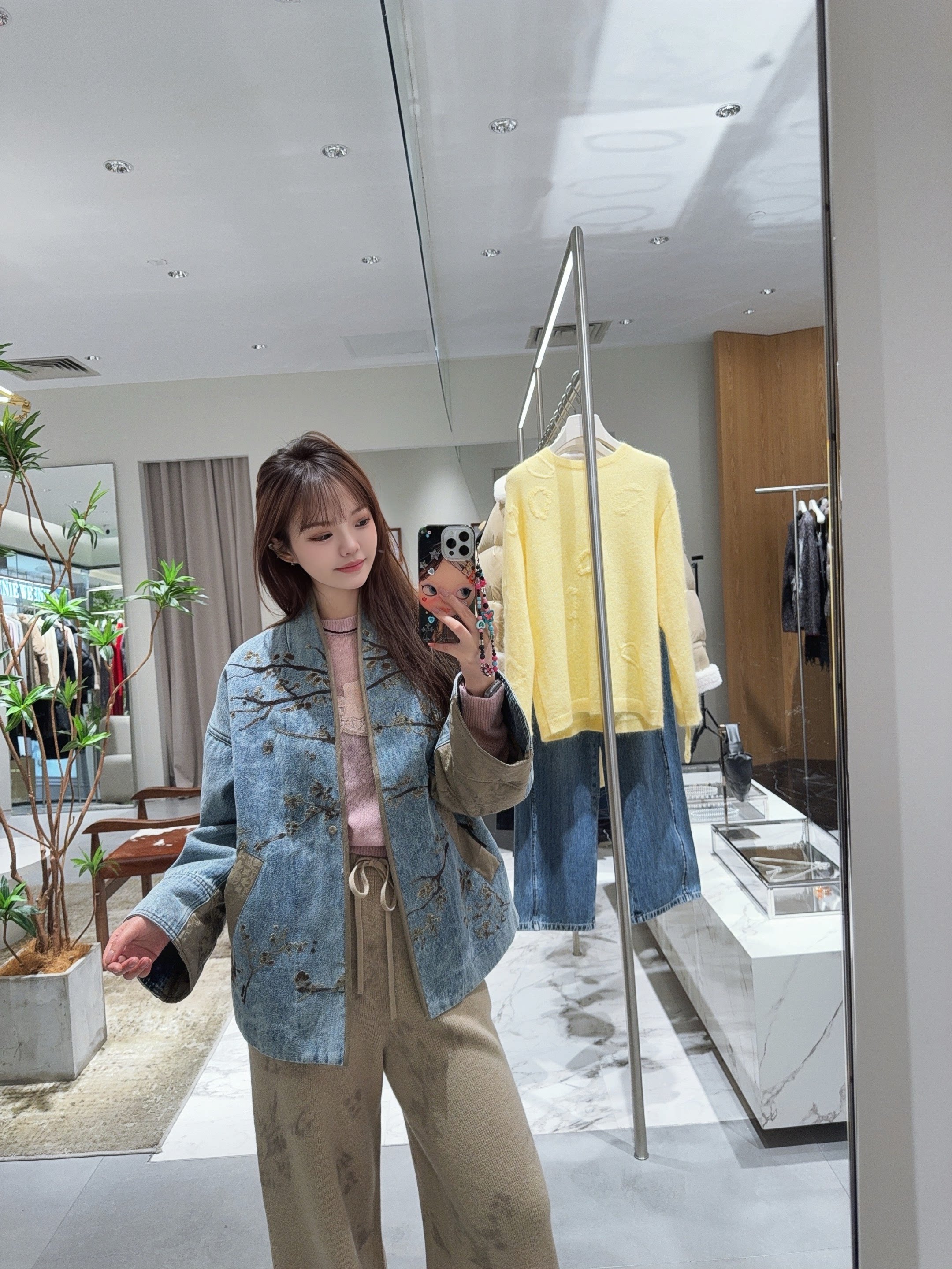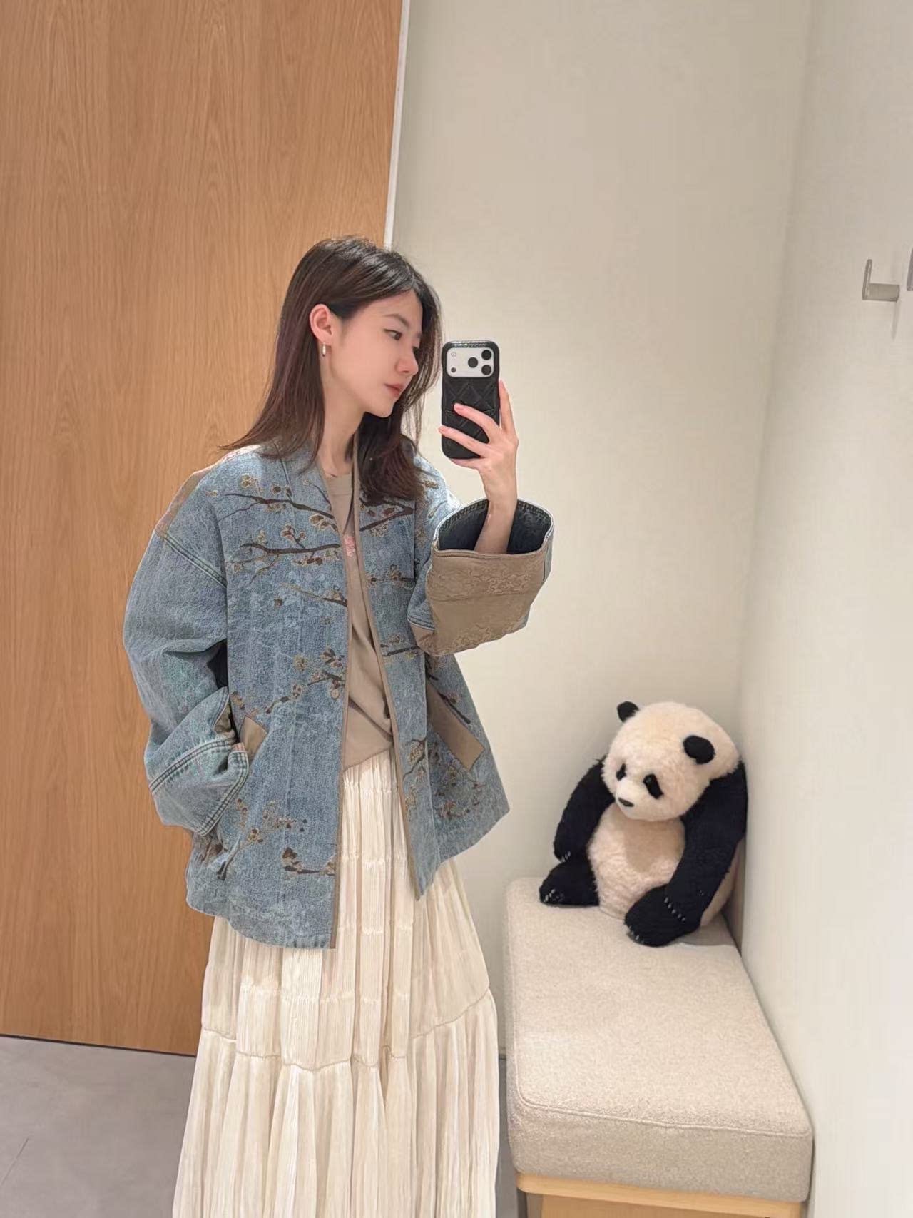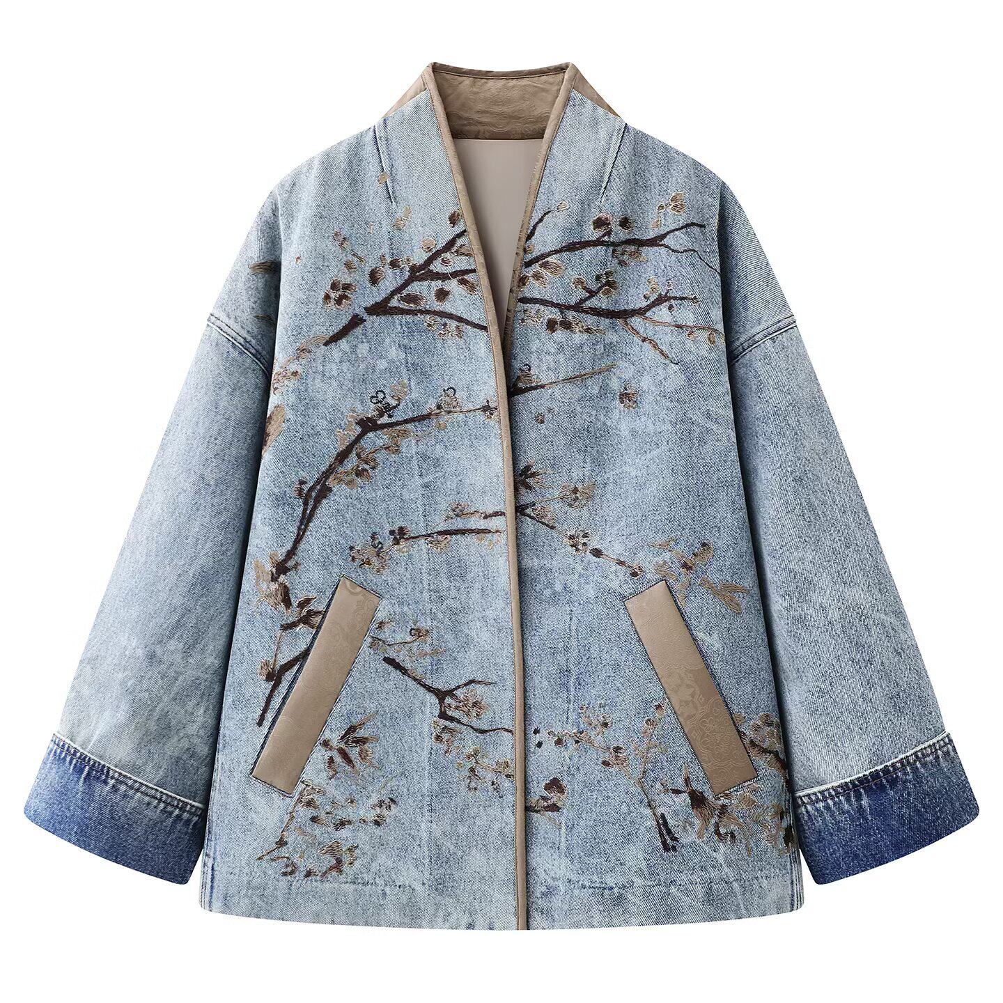 2026春季新款新中式腊梅花朵刺绣牛仔外套女宽松立领宽松薄棉外套