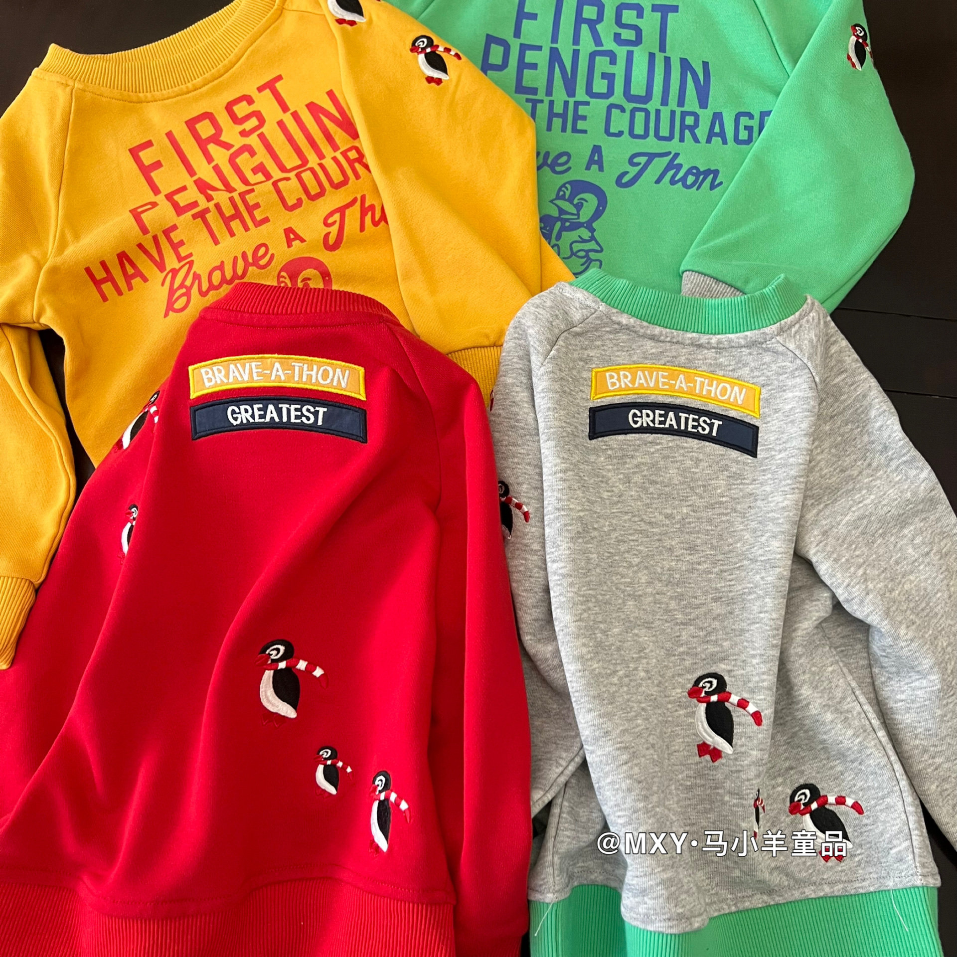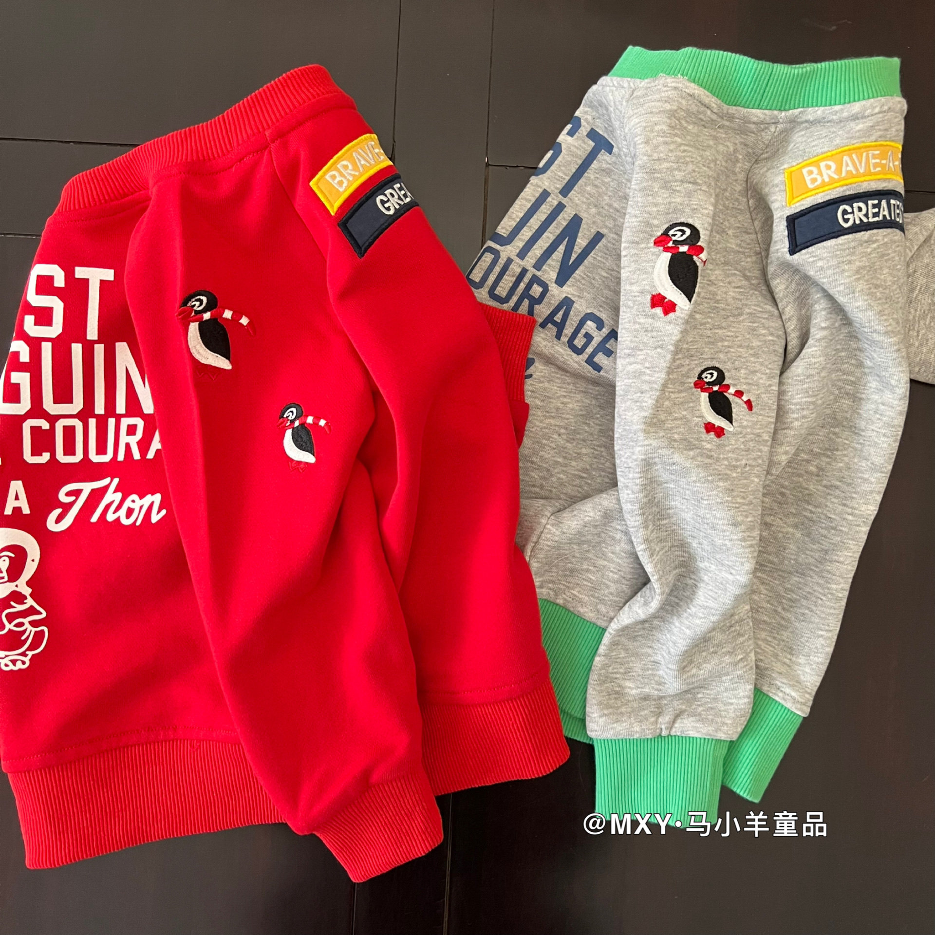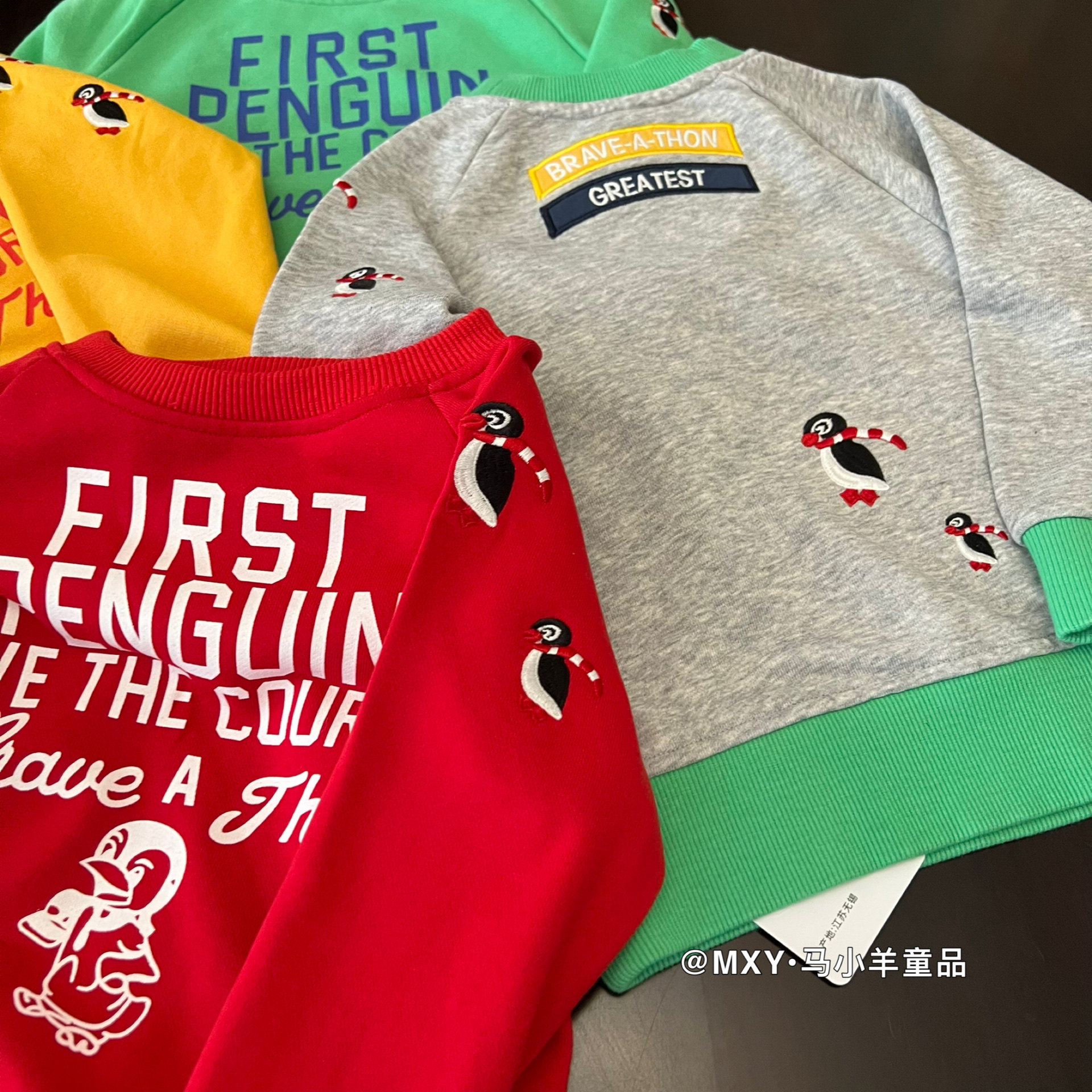 超软~日系DD童装儿童企鹅长袖卫衣26春款男女童卡通刺绣纯棉卫衣