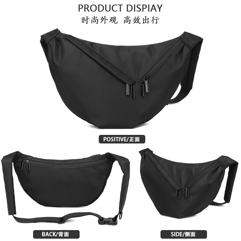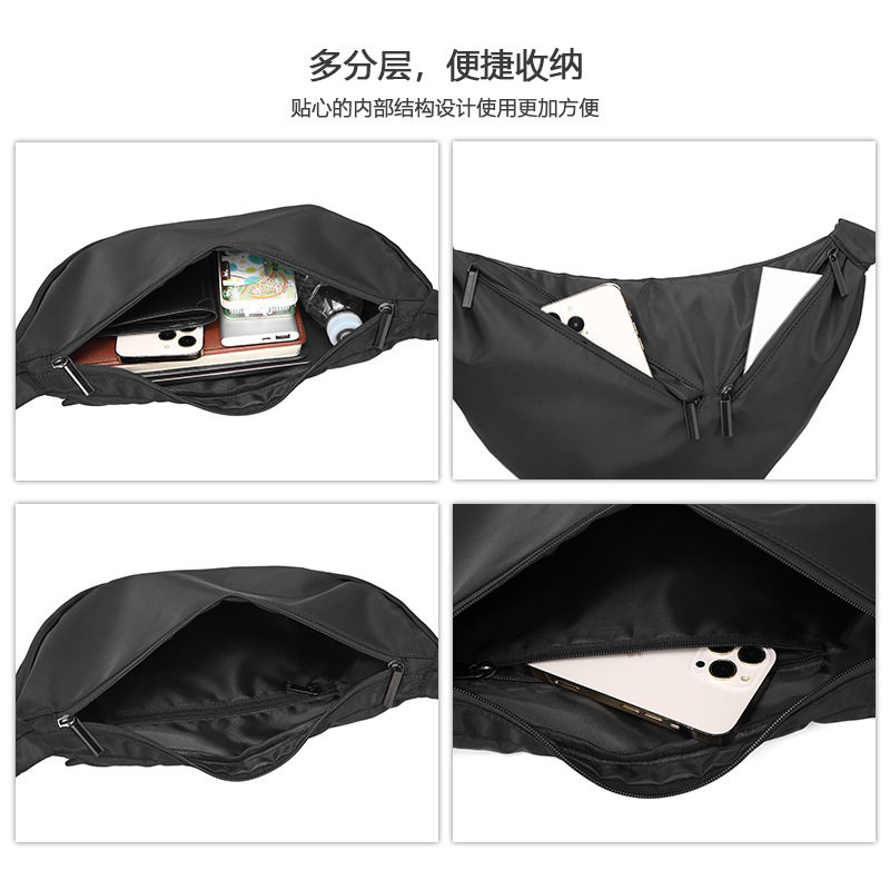 日系潮流宽带饺子包斜挎包男款牛津布单肩大容量帆布包女黑大包