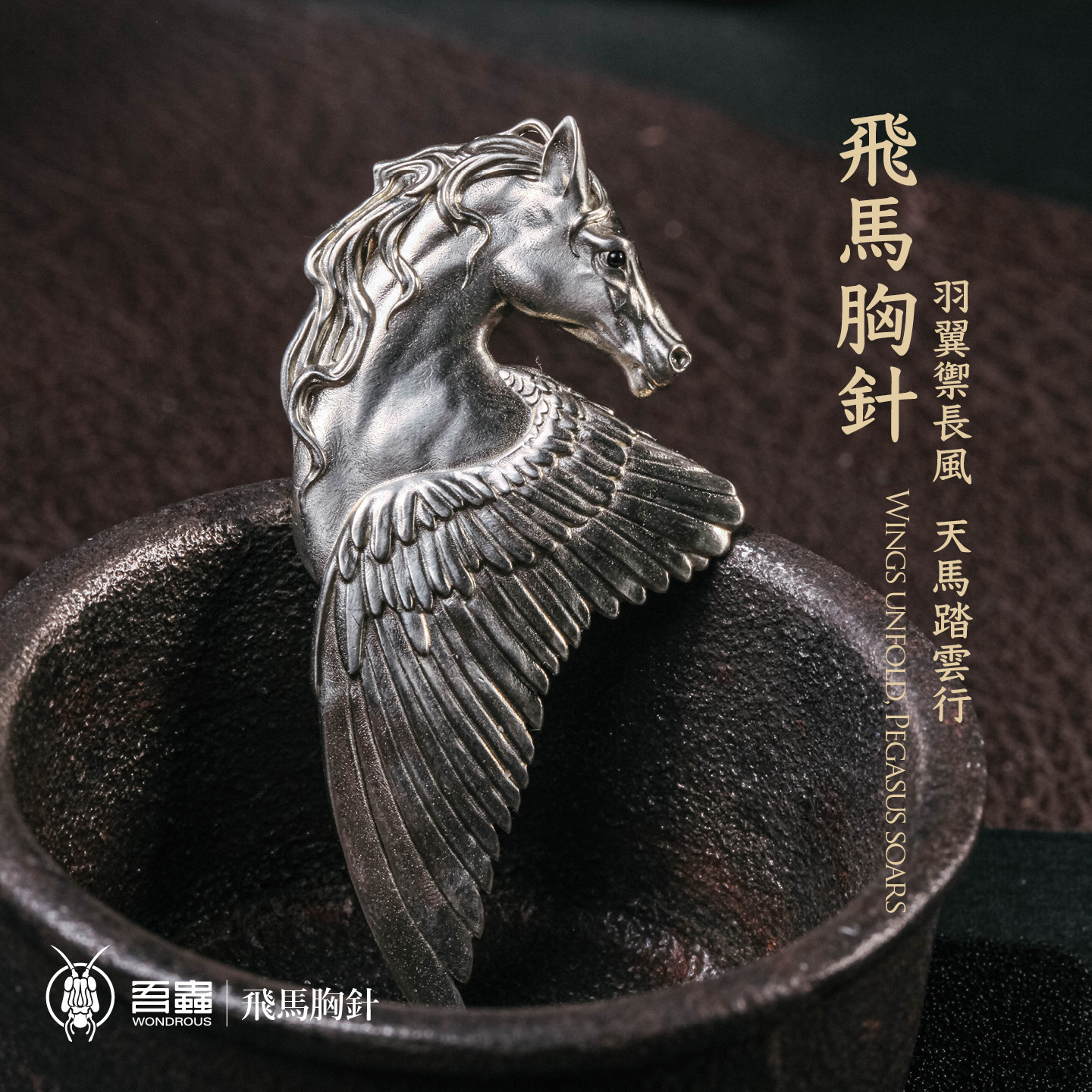 吾蟲复古飞马胸针马年金属别针帽徽暗黑系原创配饰生肖礼物