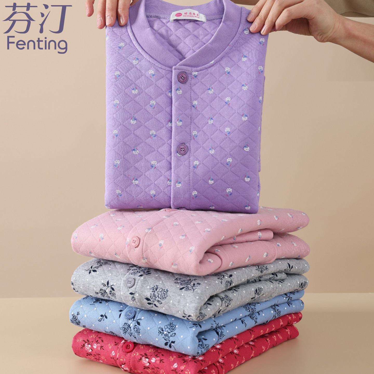 老太太纯棉开衫上衣三层夹棉加厚秋衣秋裤家居服女保暖内衣老年人