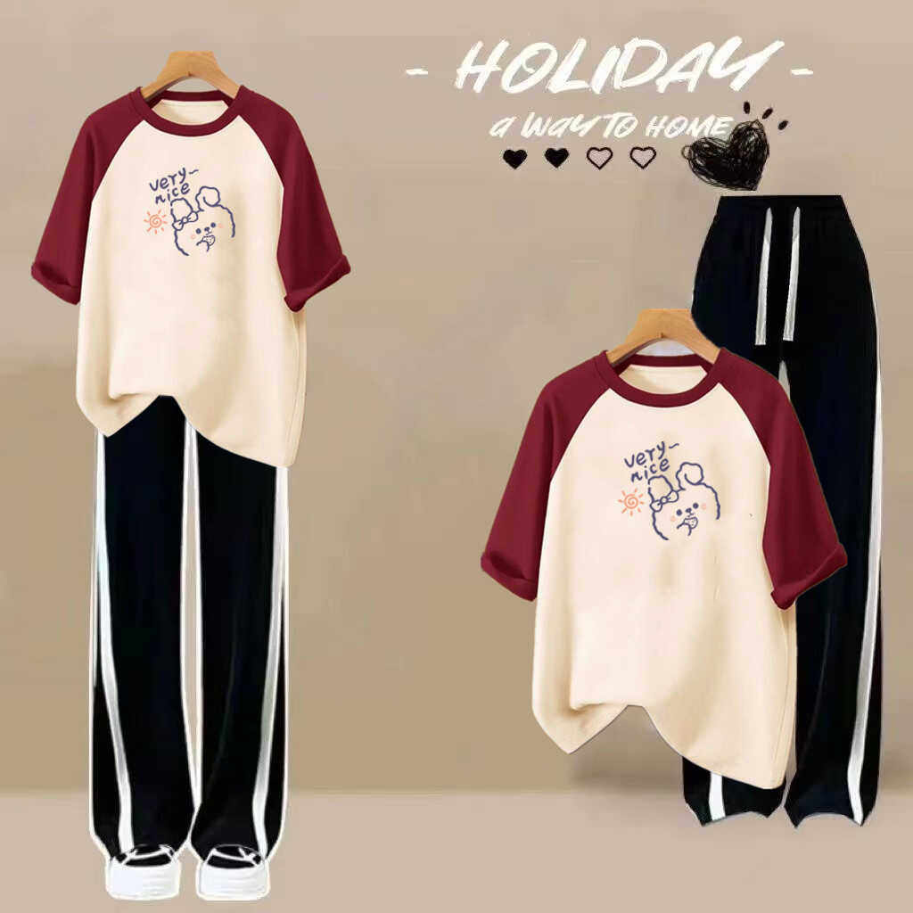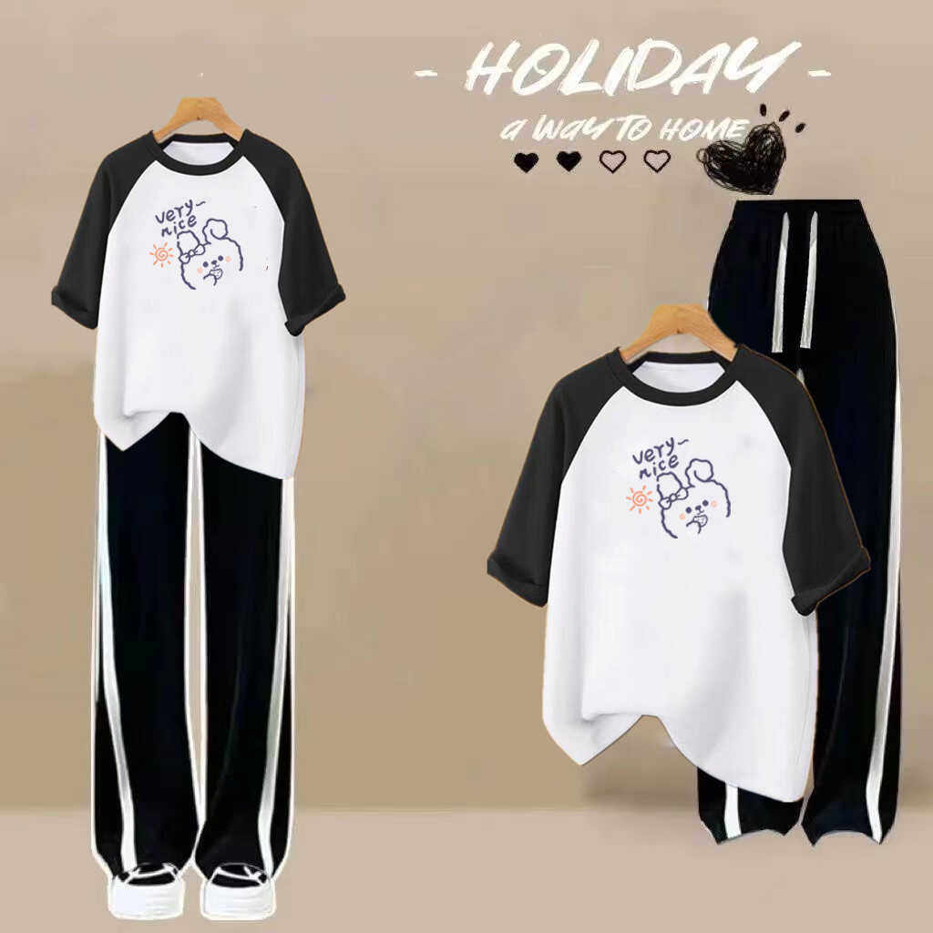 初中生夏季套装少女夏装2026新款女生衣服高中学生纯棉短袖T恤衫