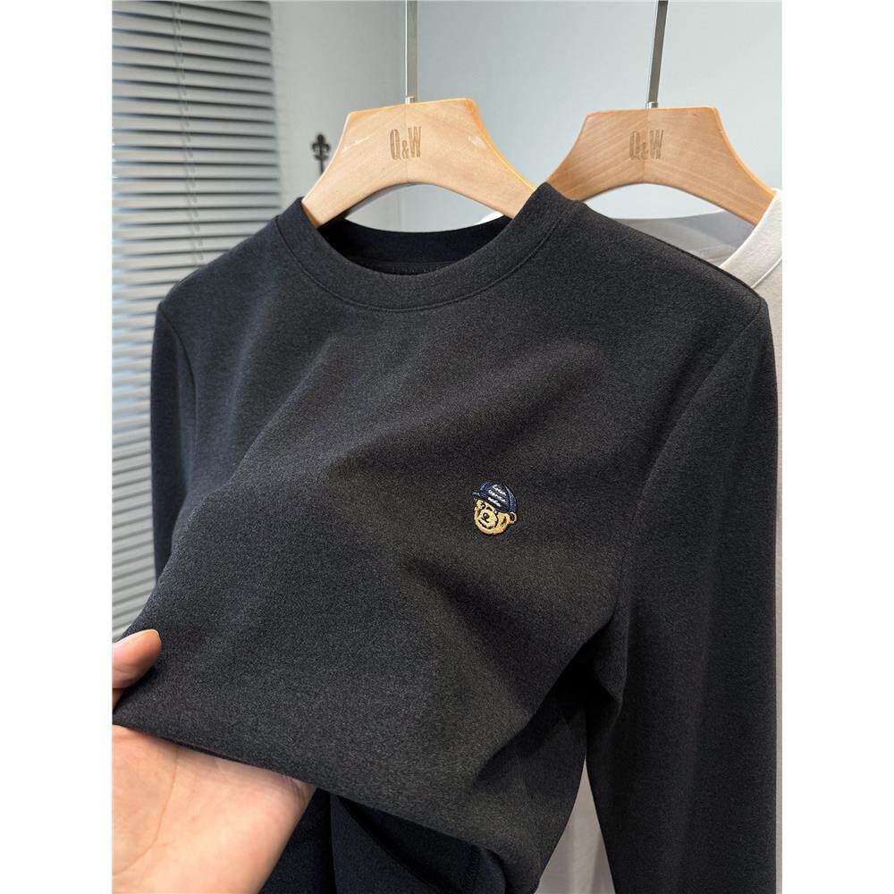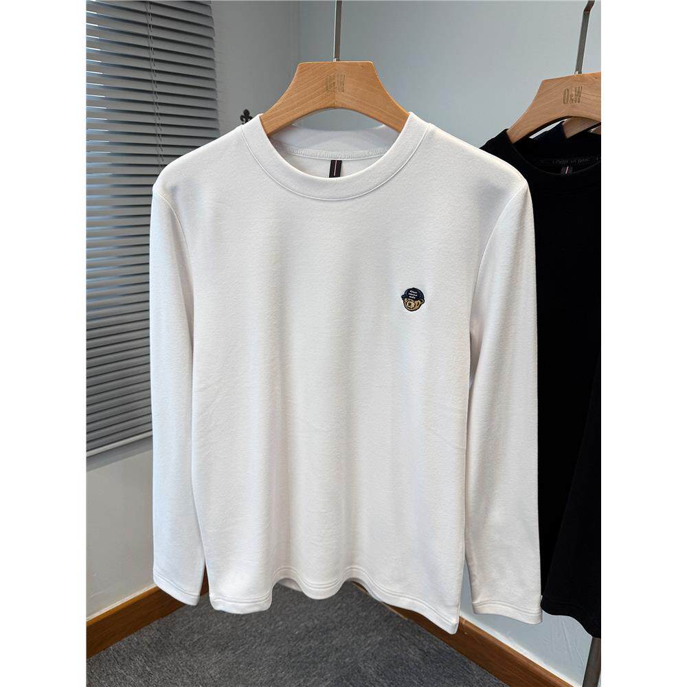 小熊刺绣磨毛德绒打底衫男款长袖冬季青年休闲t恤男圆领修身内搭