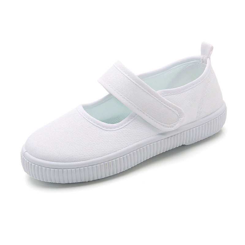 儿童小白鞋女童白布鞋表演帆布鞋小学生白色球鞋幼儿园室内运动鞋