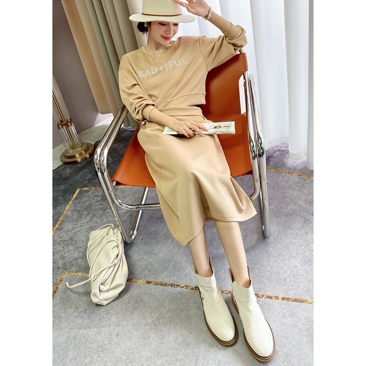 腰间系扣绑带半身裙套装女春春款女装2026设计感印花卫衣两件套