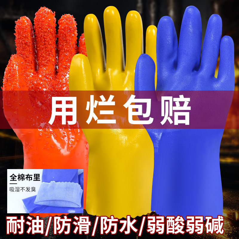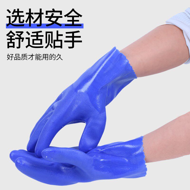 橡胶手套防水杀鱼手套劳保工作耐磨胶皮防油耐油全浸塑干活用