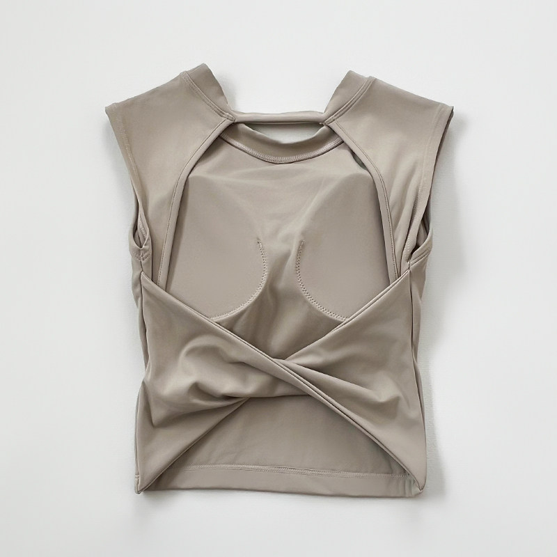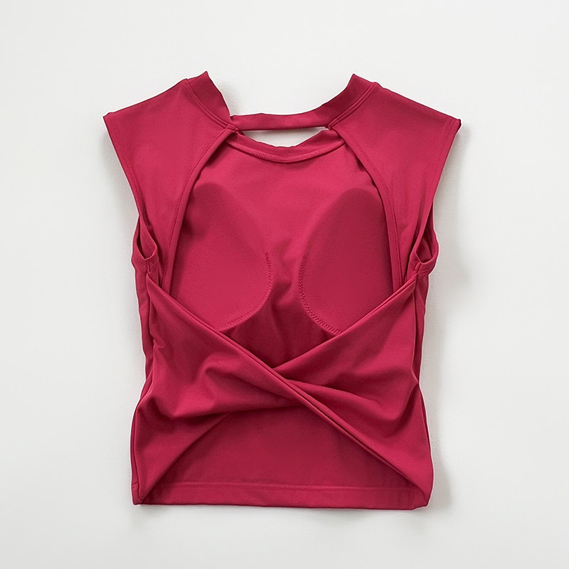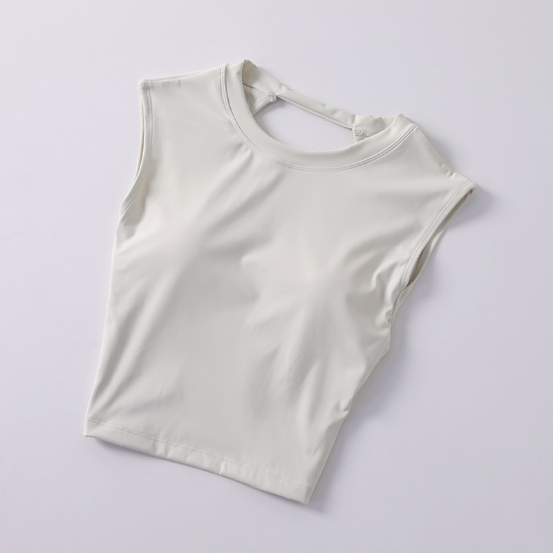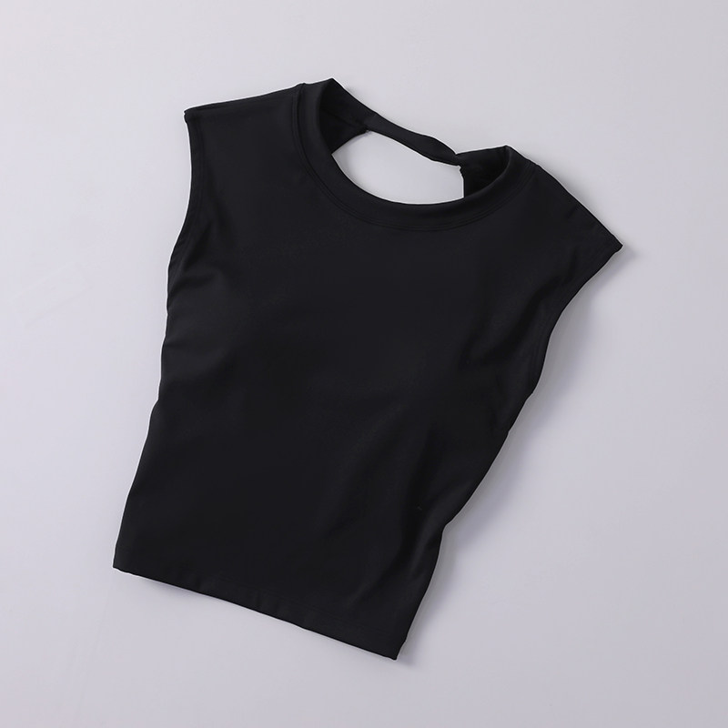 性感短款露背固定胸垫运动T恤背心女紧身速干显瘦无袖瑜伽服上衣