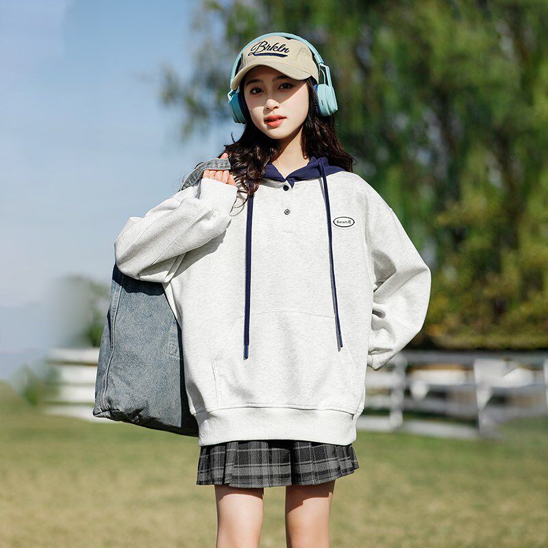 女童连帽卫衣春秋2025新款大童春装洋气上衣少女宽松初中生打底衫