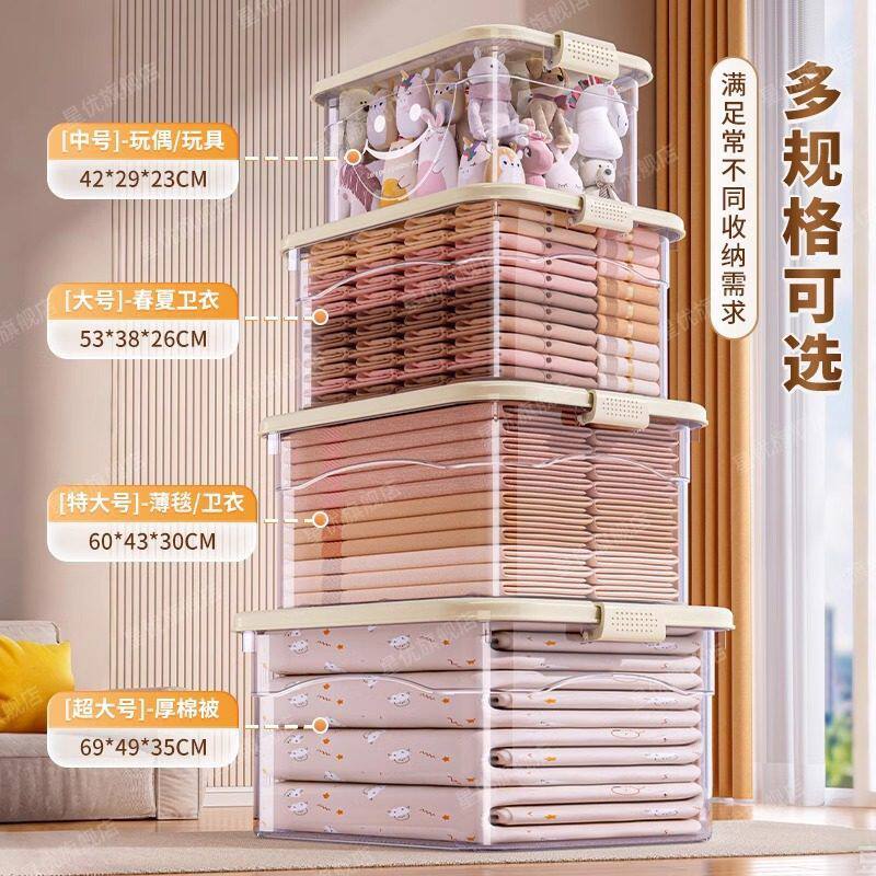 透明收纳箱大容量超大家用衣柜衣服玩具储物箱带盖加厚塑料整理箱