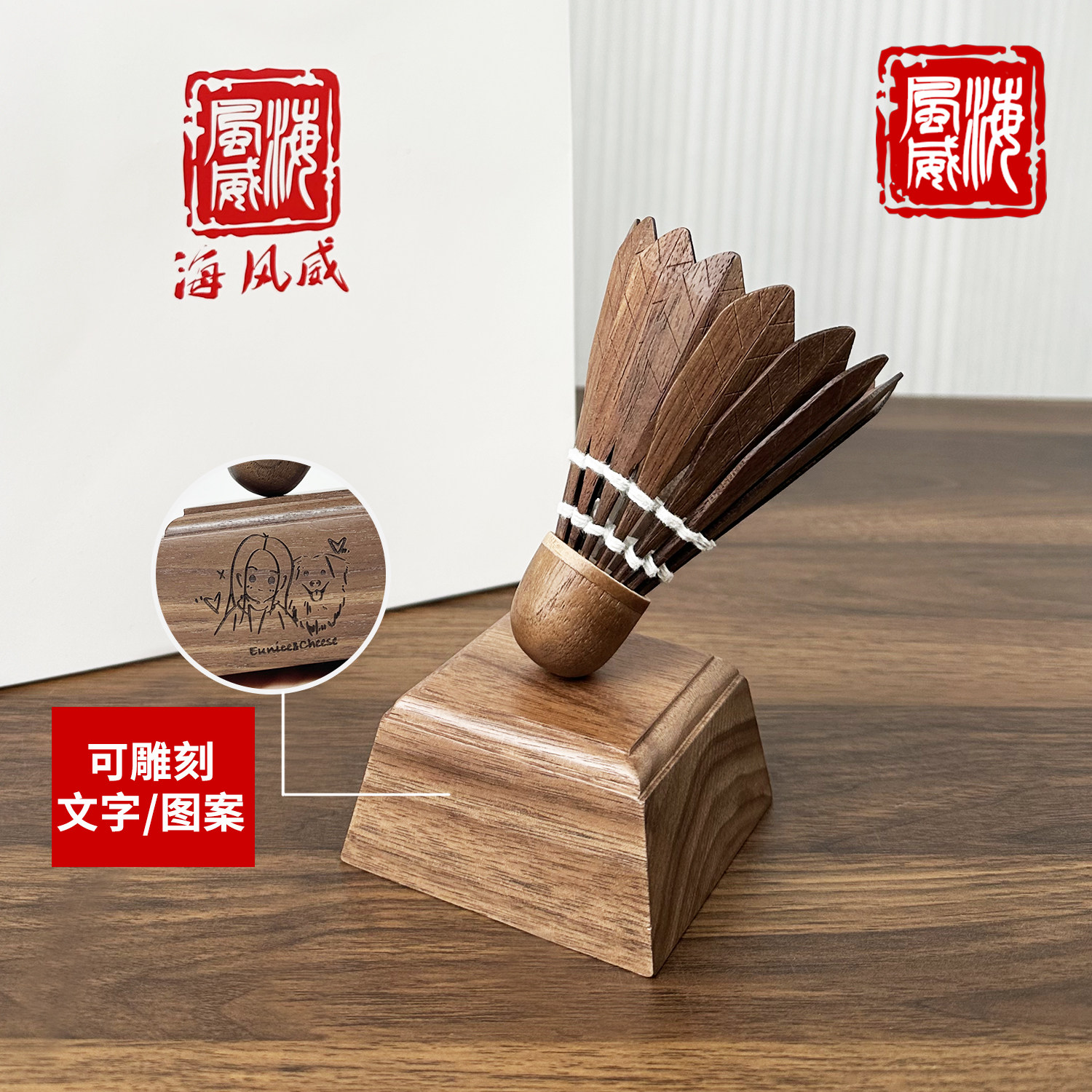 海风威胡桃木羽毛球摆件挂件磁吸桌面羽毛球周边男生女生毕业礼物