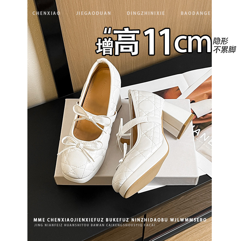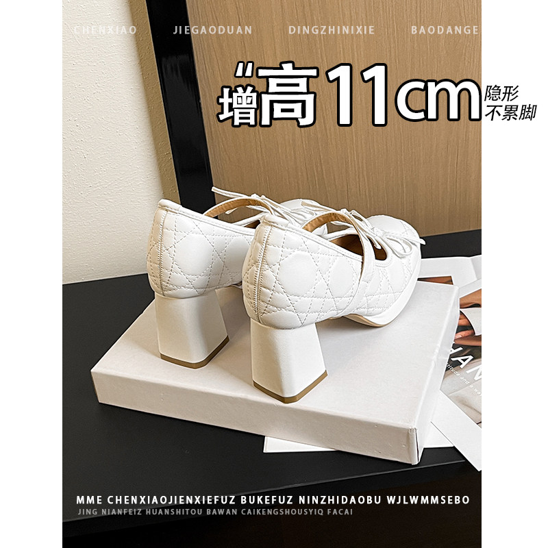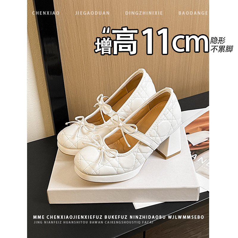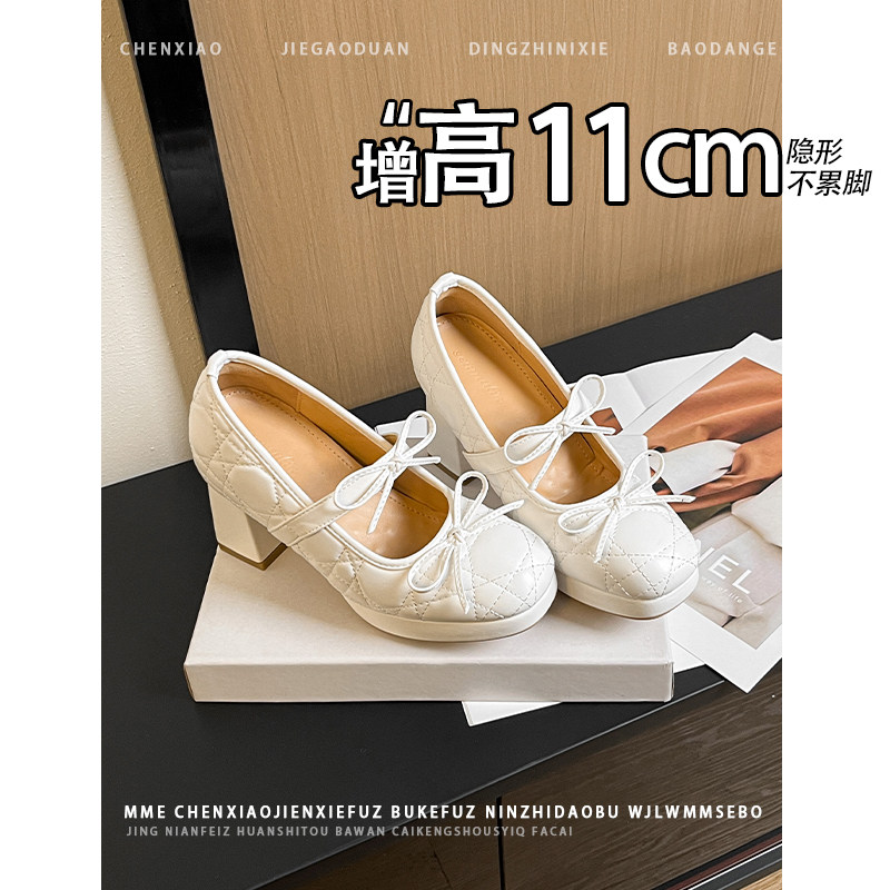 不累脚!内增高11CM圆头粗跟玛丽珍单鞋2026新款套脚浅口高跟鞋女