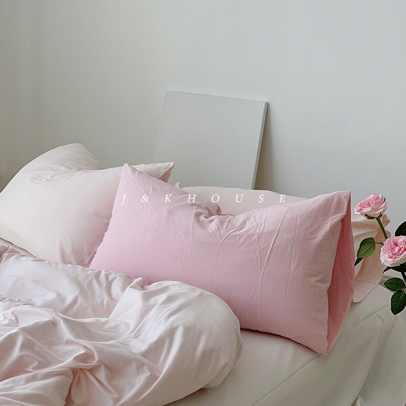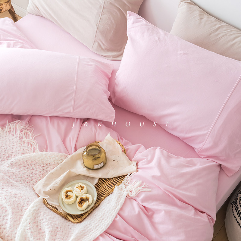 Girlish|少女樱花粉色四件套纯棉全棉针织天竺棉枕套床单被套夏季