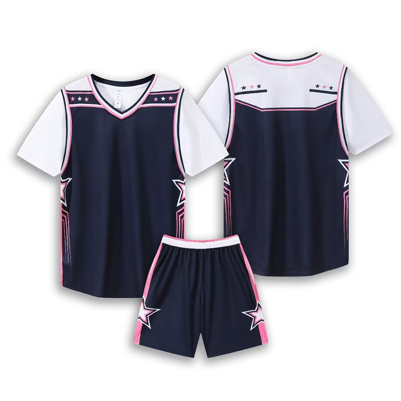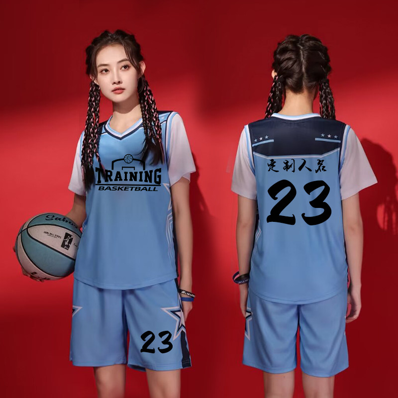 新款篮球服女假两件套装女生高初中学生女生球服有袖球衣237宝蓝