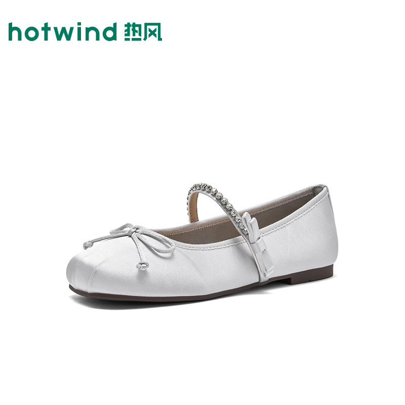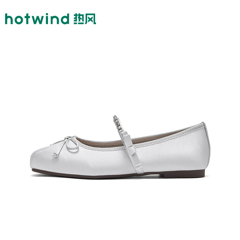 热风平底玛丽珍鞋女2026年春季新款百搭浅口单鞋蝴蝶结银色女鞋子