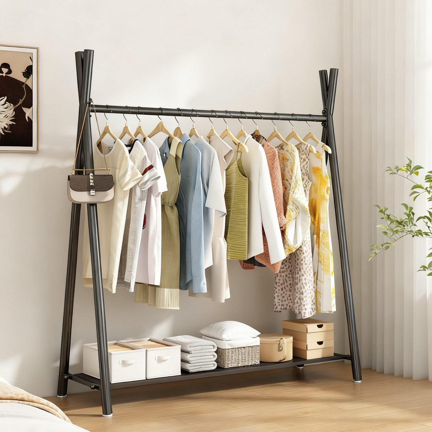 落地晾衣架家用加粗单杆式挂衣架阳台简易移动晾晒架卧室收纳架子